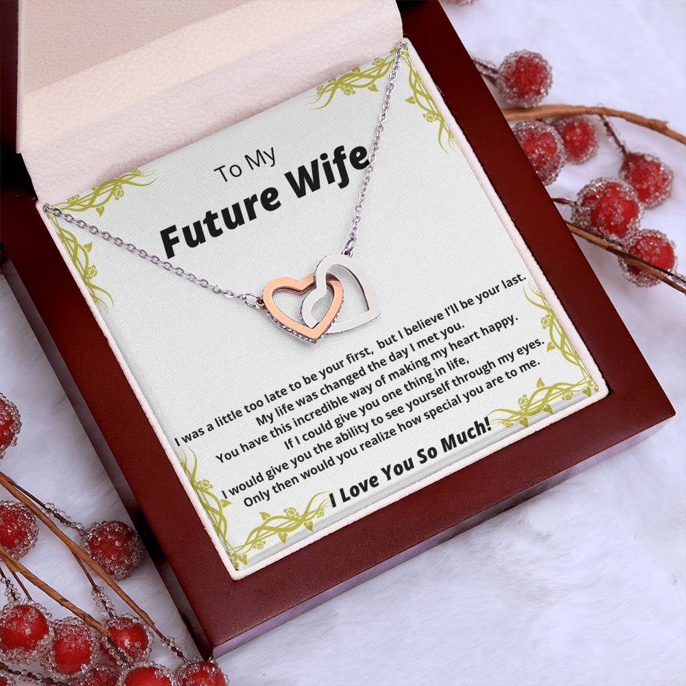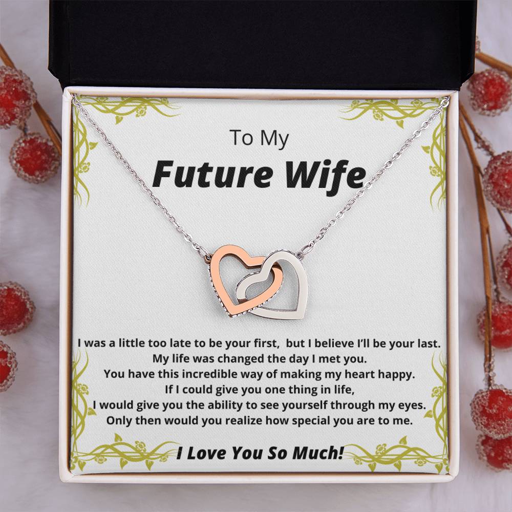My Life Was Changed The Day I Met You 18K Rose Gold Interlocking Hearts Necklace Jewelry – Romantic Gift for Future Wife from Fiancé