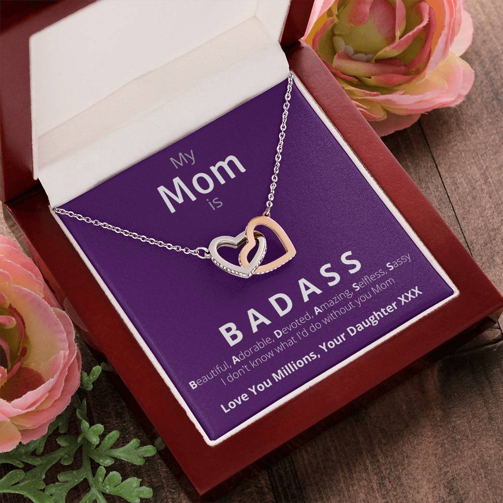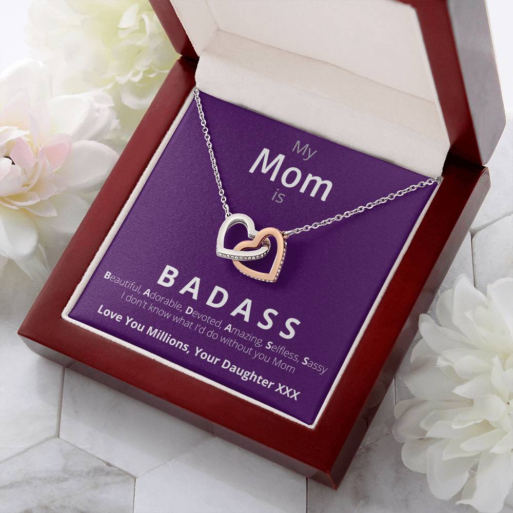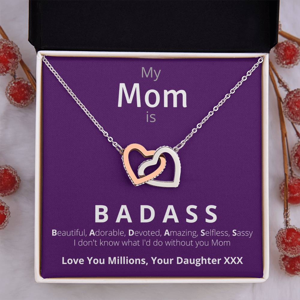 My Mom Is Badass 18K Rose Gold Interlocking Hearts Necklace Jewelry – Beautiful Birthday Gift for Mom from Daughter