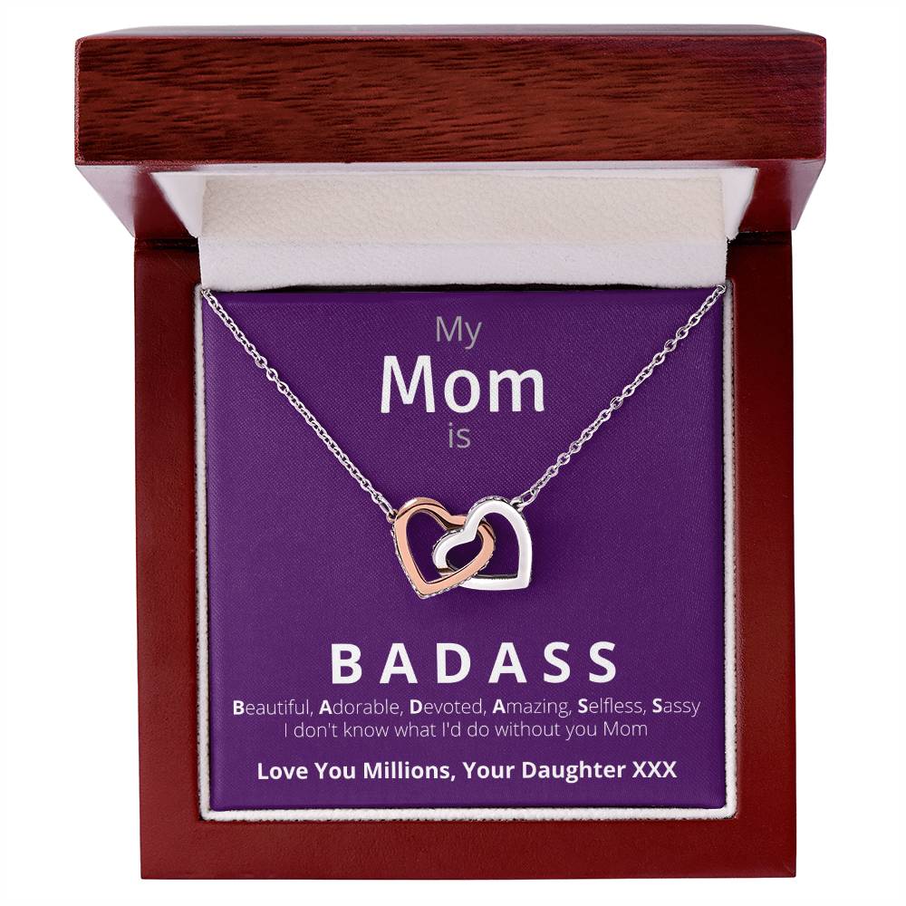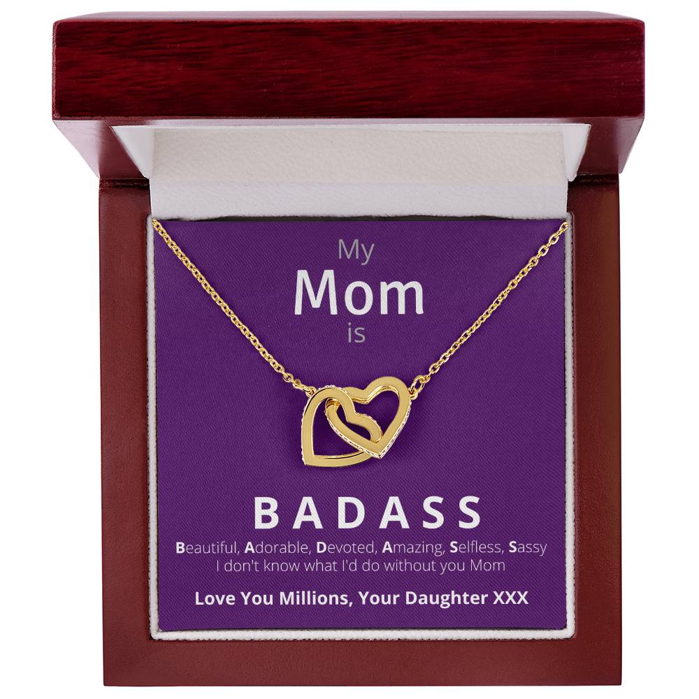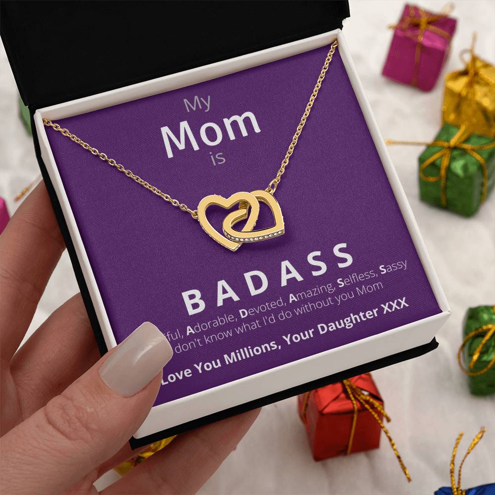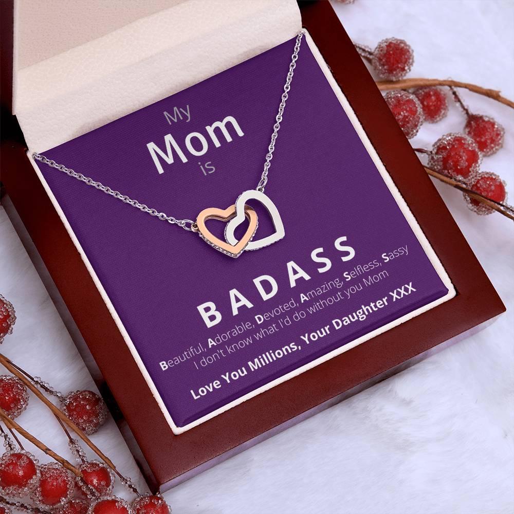 My Mom Is Badass 18K Rose Gold Interlocking Hearts Necklace Jewelry – Beautiful Birthday Gift for Mom from Daughter