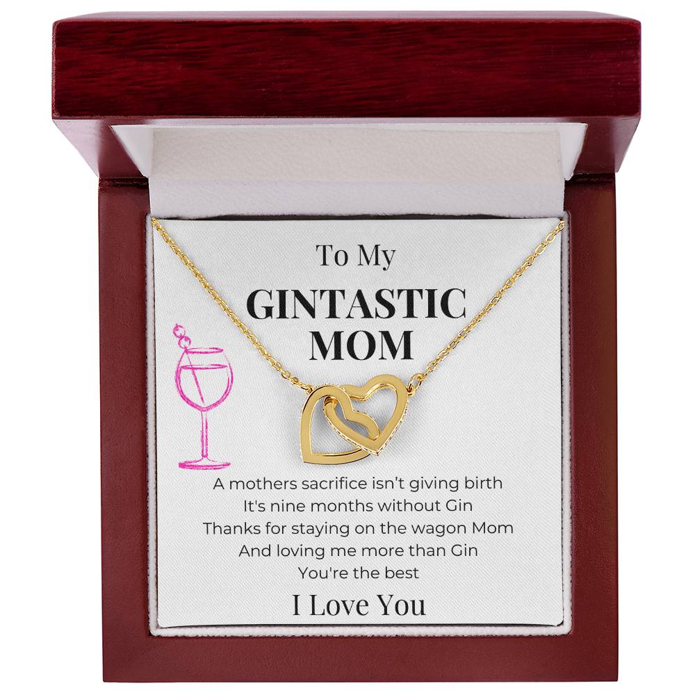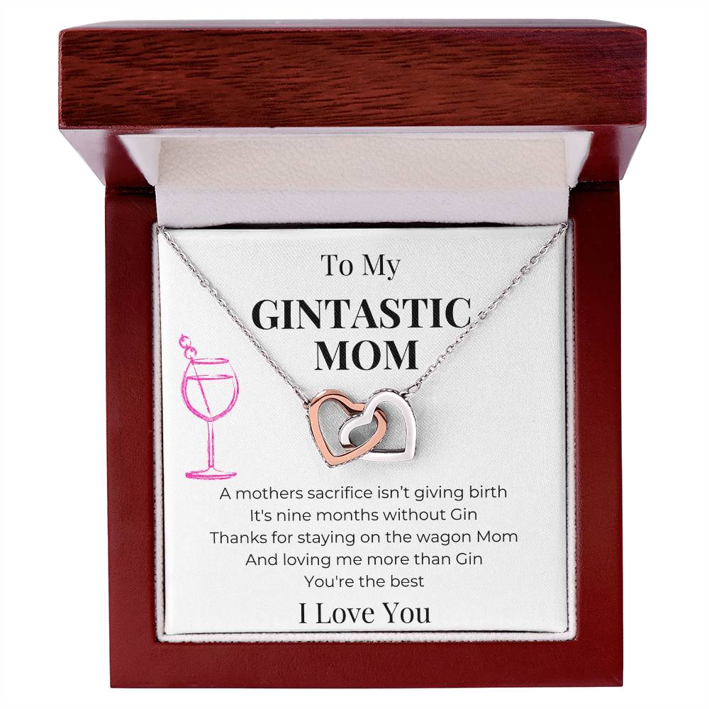 Nine Months Without Gin True Love Mom 18K Rose Gold Interlocking Hearts Necklace Jewelry Funny Gift for Gin-Loving Mom Birthday