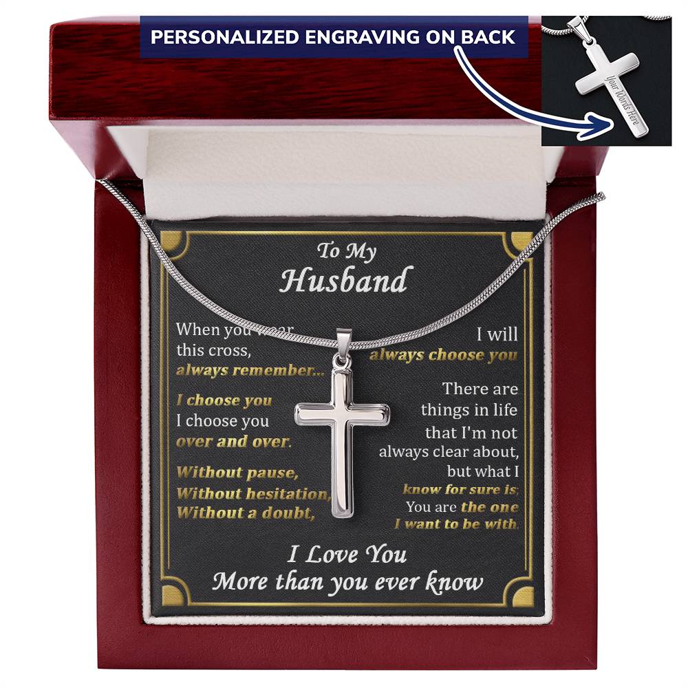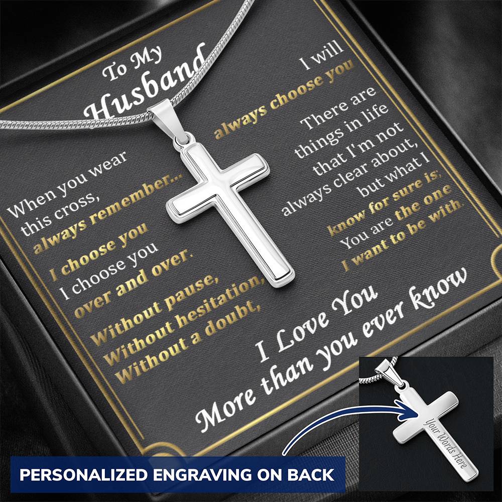 Personalized Always Choose You Stainless Steel Cross Necklace Engraved Perfect Anniversary Gift for Husband
