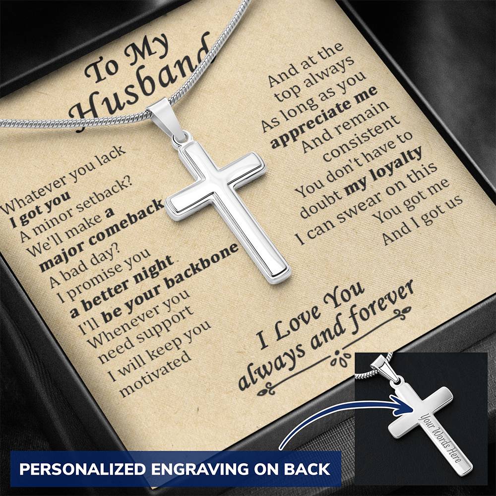 Personalized Be Your Backbone My Loyalty Stainless Steel Cross Necklace Engraved Perfect Anniversary Gift for Husband