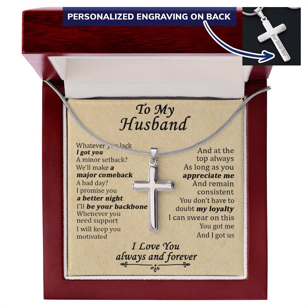 Show your beloved husband how much he means to you with this Personalized Cross Necklace for Husband. This custom engraved cross necklace makes the perfect anniversary gift or romantic present for the faithful man in your life.