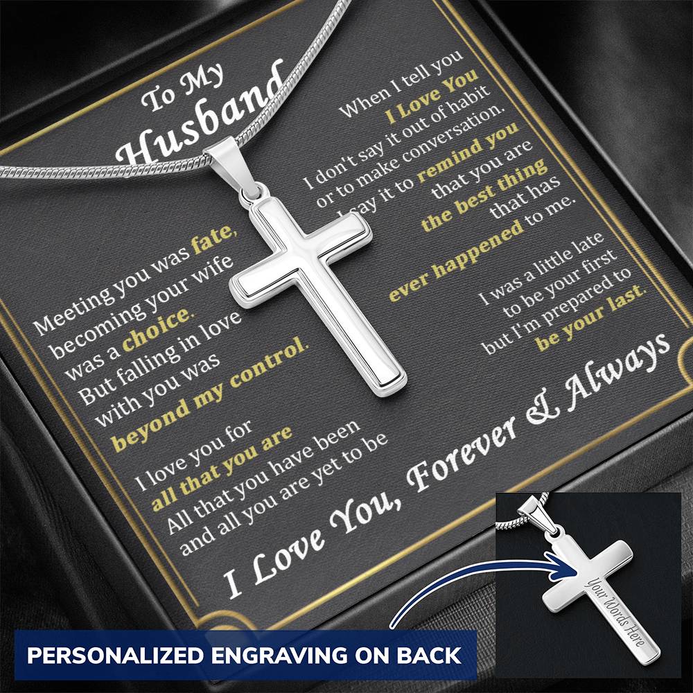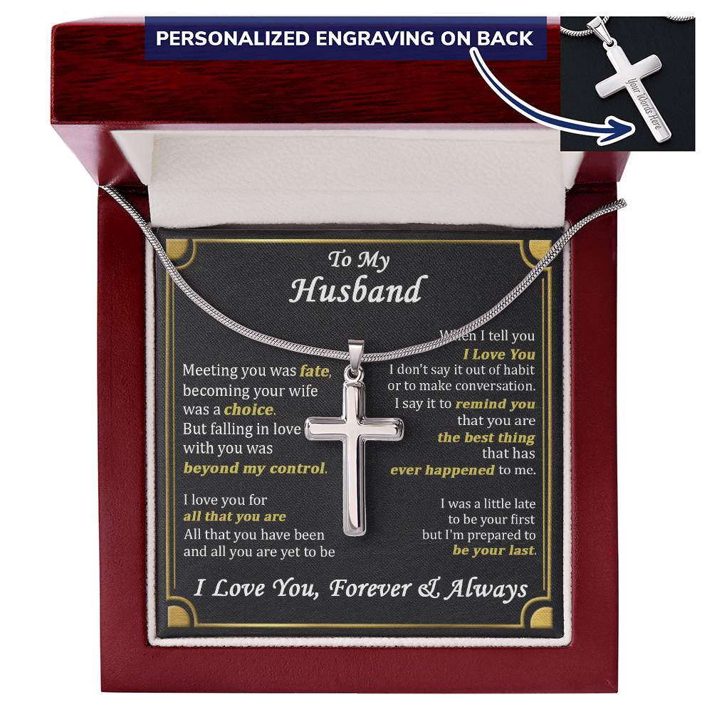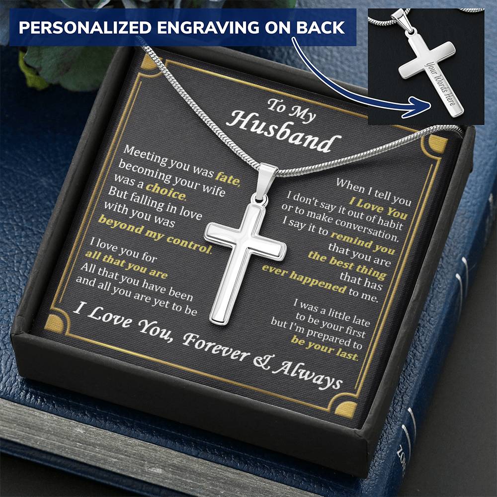 Show your beloved husband how much he means to you with this Personalized Cross Necklace for Husband. This custom engraved cross necklace makes the perfect anniversary gift or romantic present for the faithful man in your life.