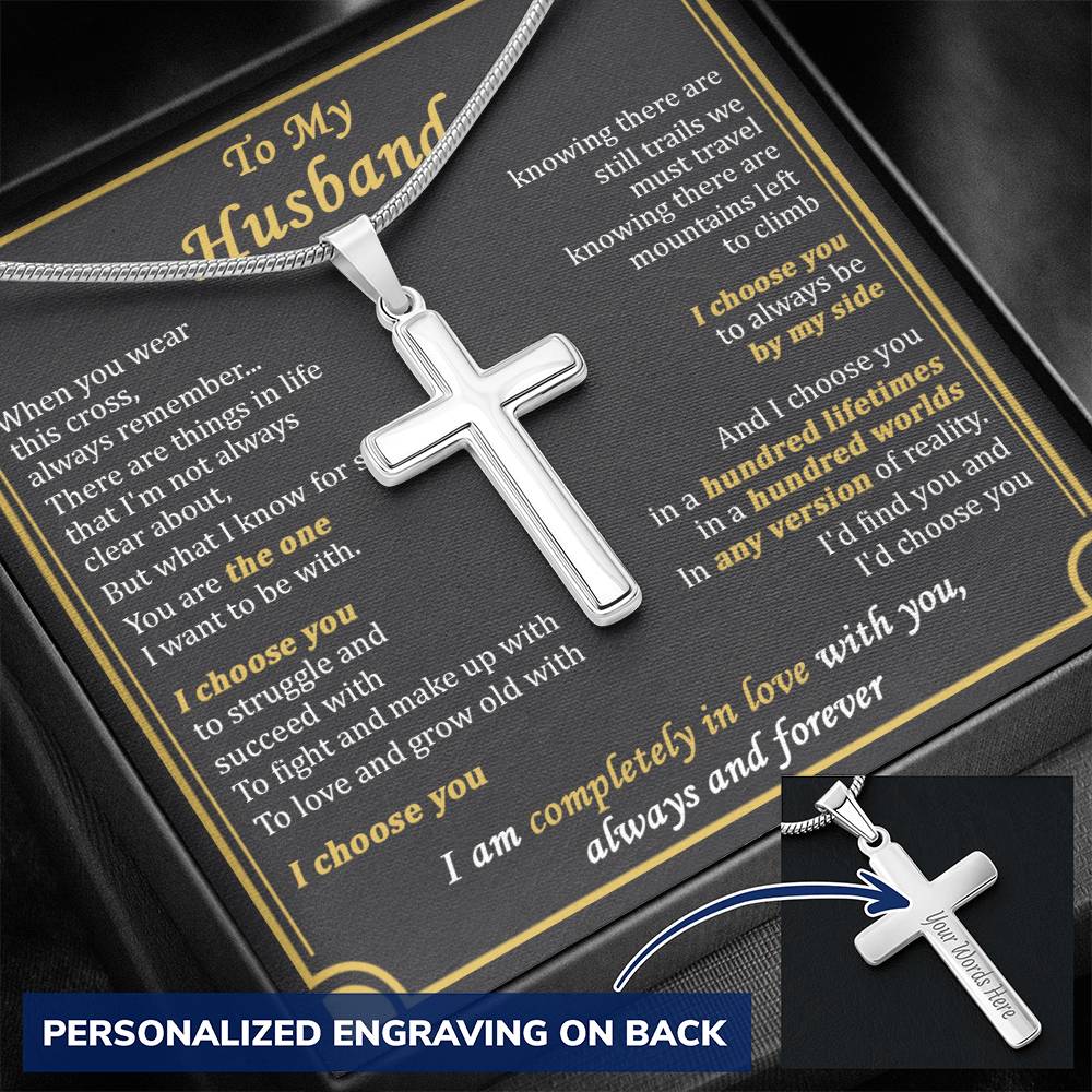 Personalized Completely in Love Stainless Steel Cross Necklace Engraved Perfect Anniversary Gift for Husband