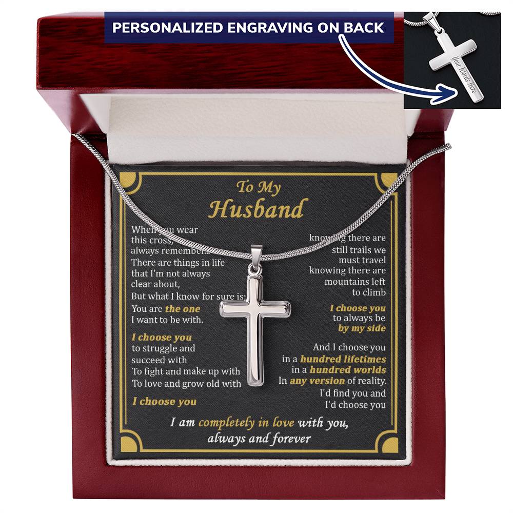 Show your beloved husband how much he means to you with this Personalized Cross Necklace for Husband. This custom engraved cross necklace makes the perfect anniversary gift or romantic present for the faithful man in your life.