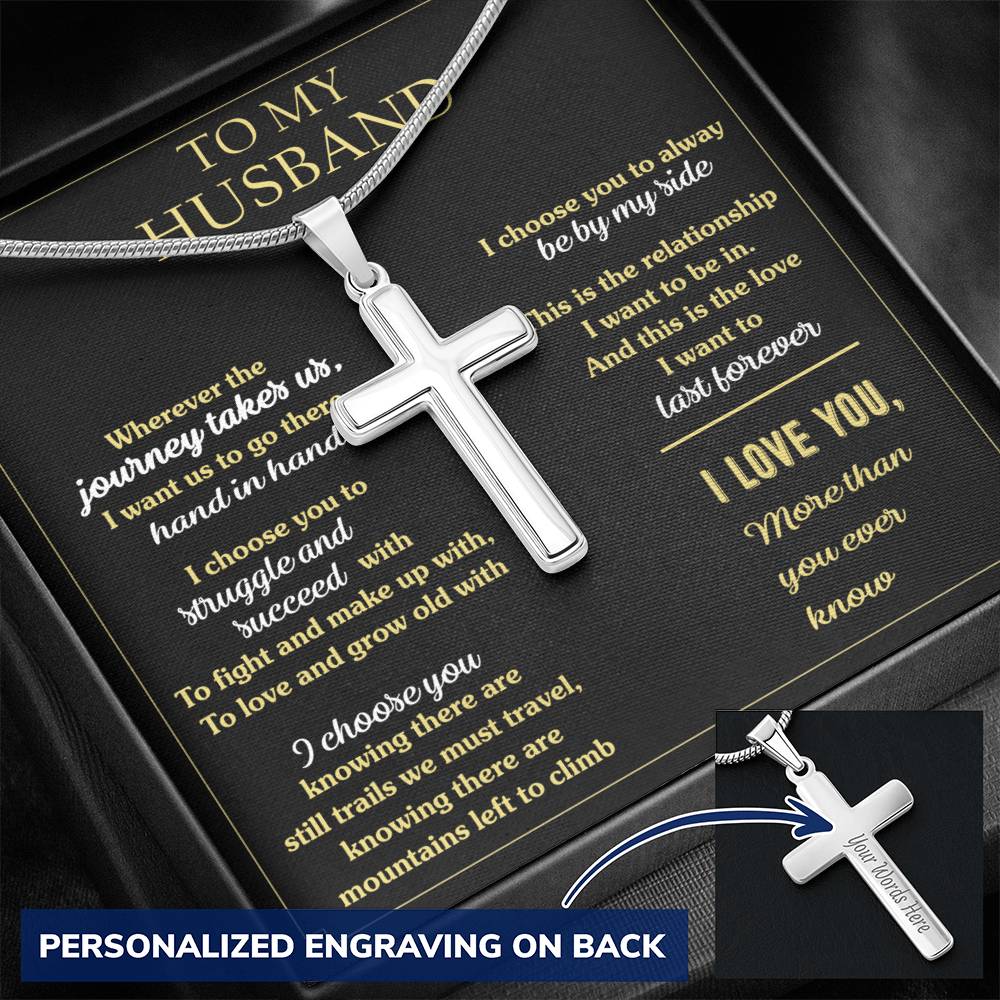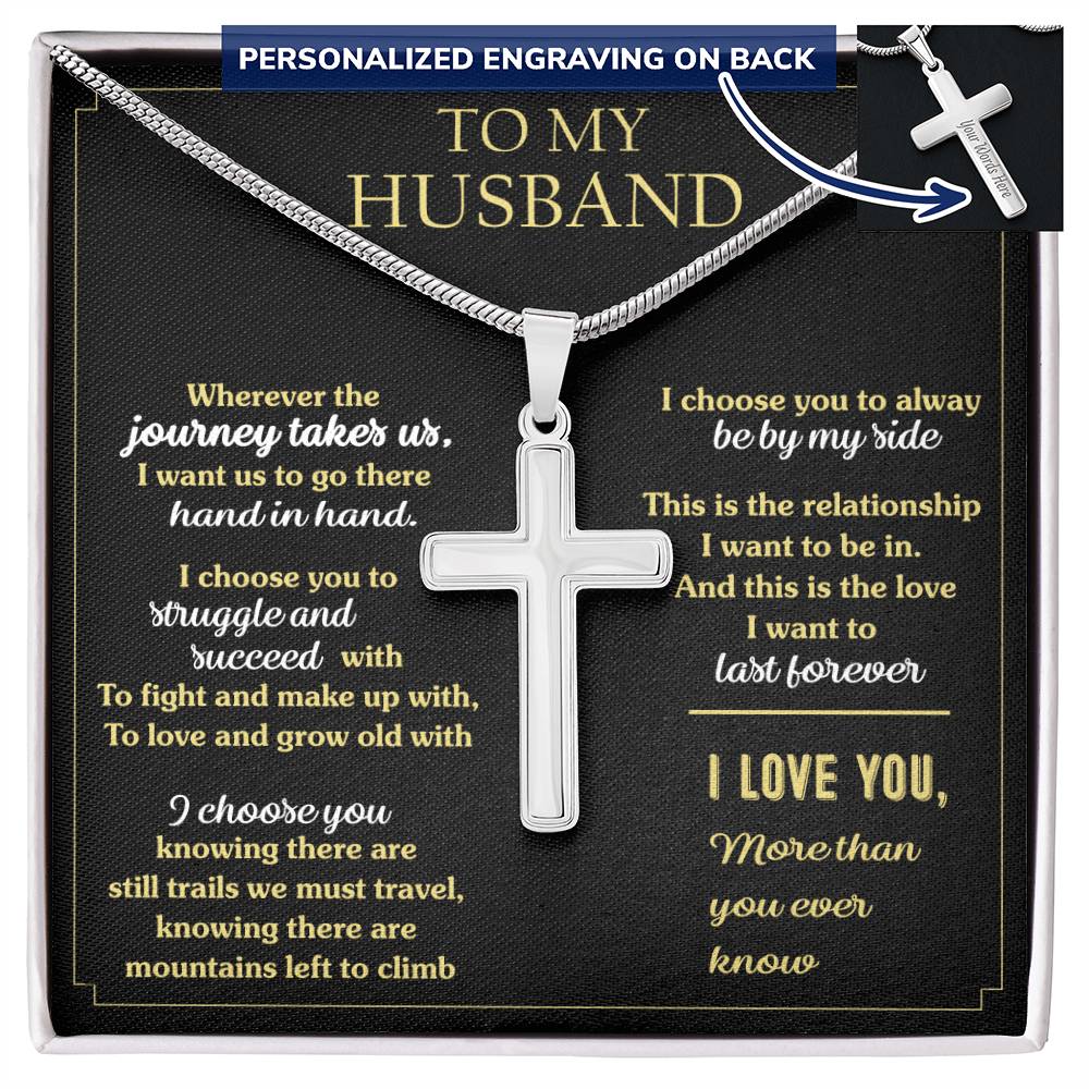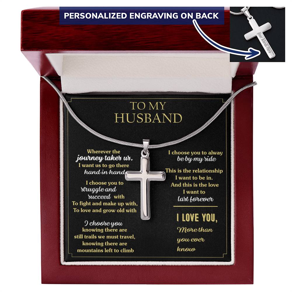 Show your beloved husband how much he means to you with this Personalized Cross Necklace for Husband. This custom engraved cross necklace makes the perfect anniversary gift or romantic present for the faithful man in your life.