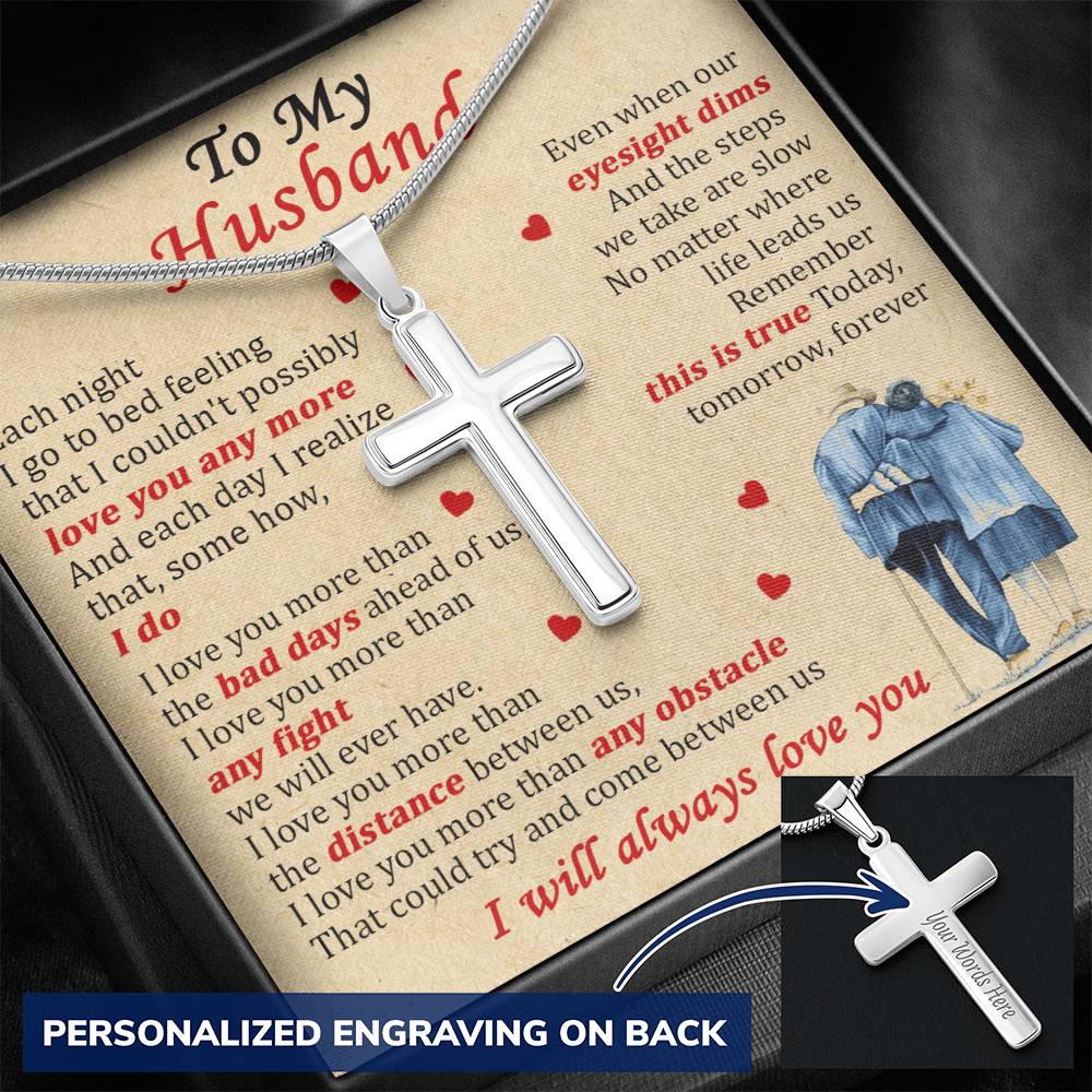 Personalized I Love You More Than the Bad Days Stainless Steel Cross Necklace Engraved Perfect Anniversary Gift for Husband