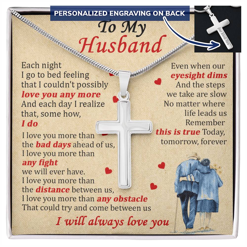 Show your beloved husband how much he means to you with this Personalized Cross Necklace for Husband. This custom engraved cross necklace makes the perfect anniversary gift or romantic present for the faithful man in your life.
