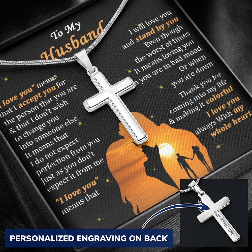 Personalized Stand by You Even Through the Worst of Times Stainless Steel Cross Necklace Engraved Perfect Anniversary Gift for Husband