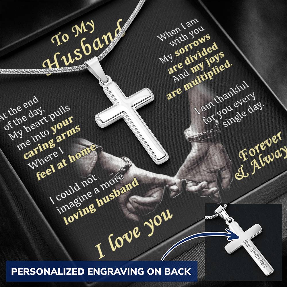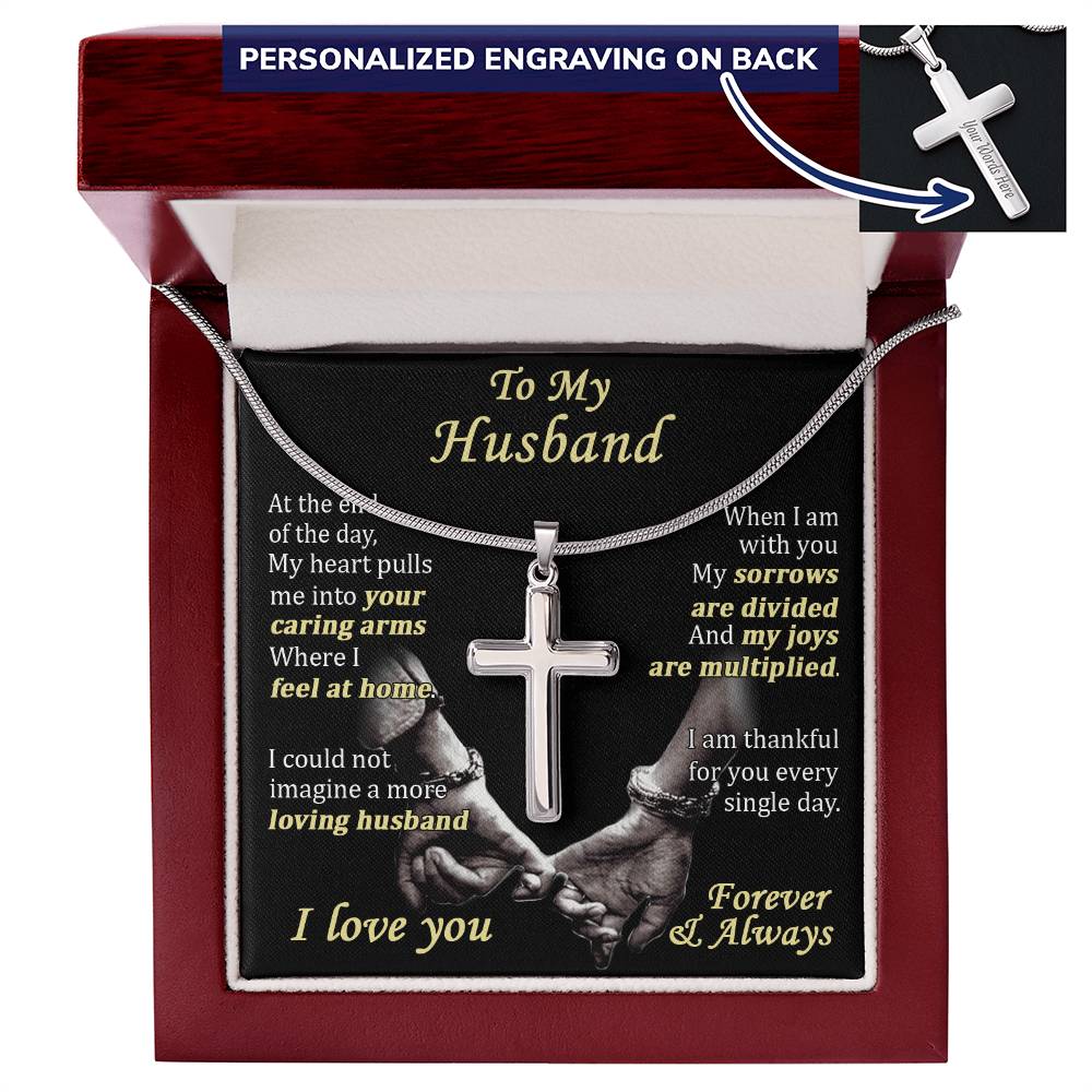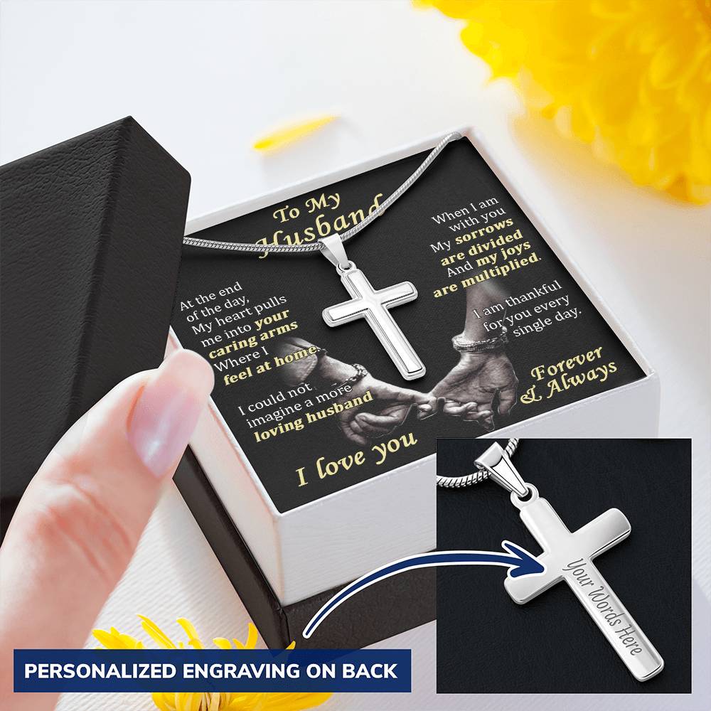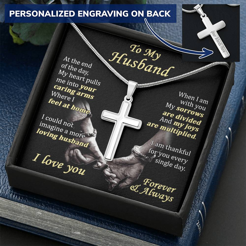 Show your beloved husband how much he means to you with this Personalized Cross Necklace for Husband. This custom engraved cross necklace makes the perfect anniversary gift or romantic present for the faithful man in your life.