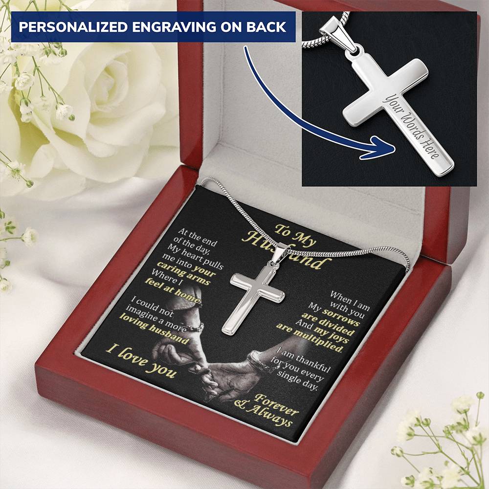 Personalized Your Caring Arms Stainless Steel Cross Necklace Engraved Perfect Anniversary Gift for Husband
