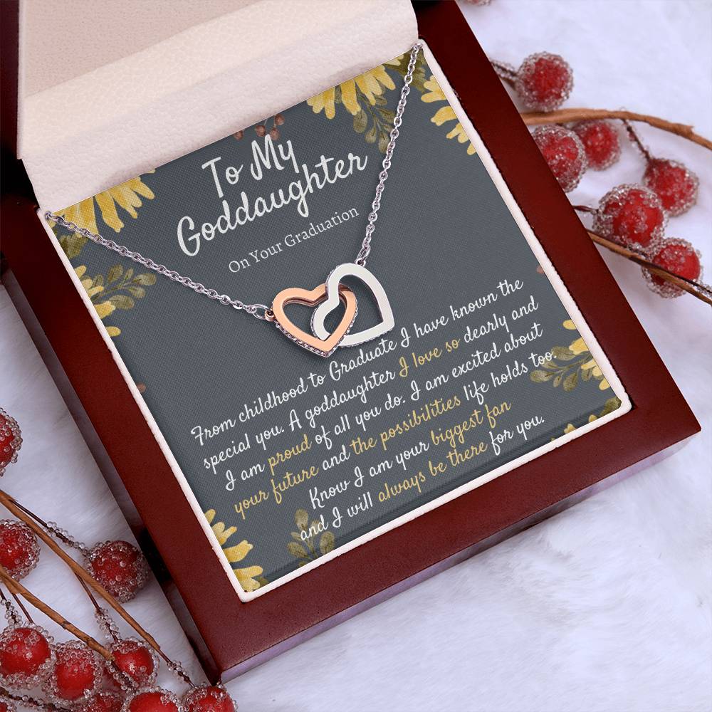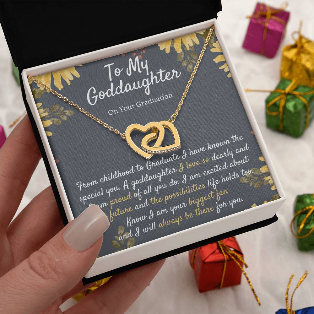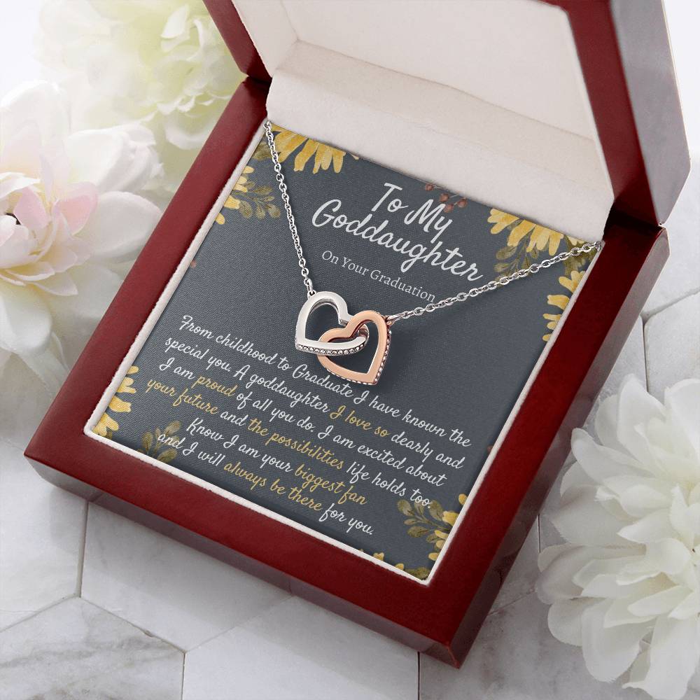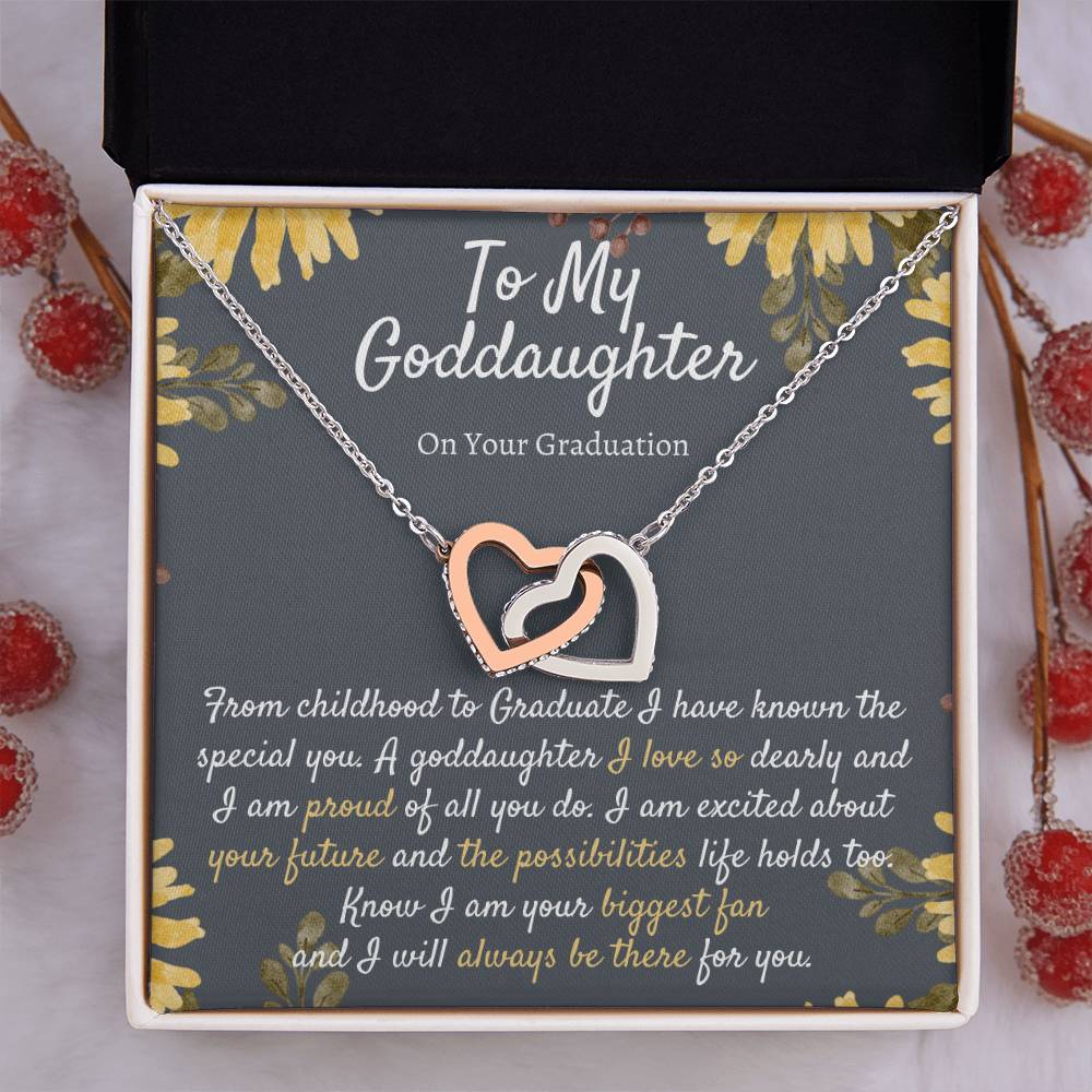 Proud of You Goddaughter 18K Rose Gold Interlocking Hearts Necklace Jewelry Sentimental Graduation Gift from Godmother