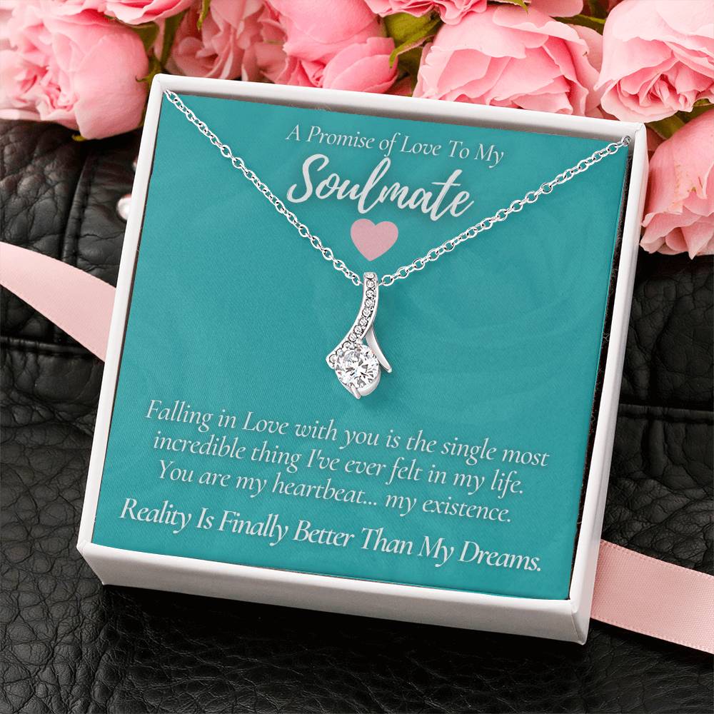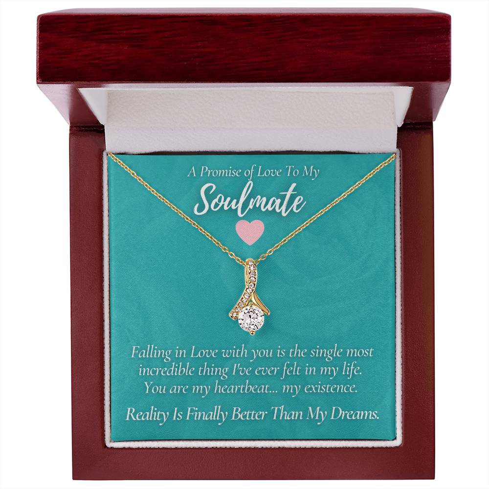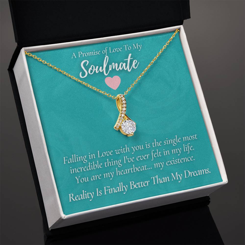 Reality Better Than Dreams Soulmate Gift 18K Yellow Gold Finish Alluring Beauty Necklace Jewelry Romantic Present for Beautiful Girlfriend Anniversary