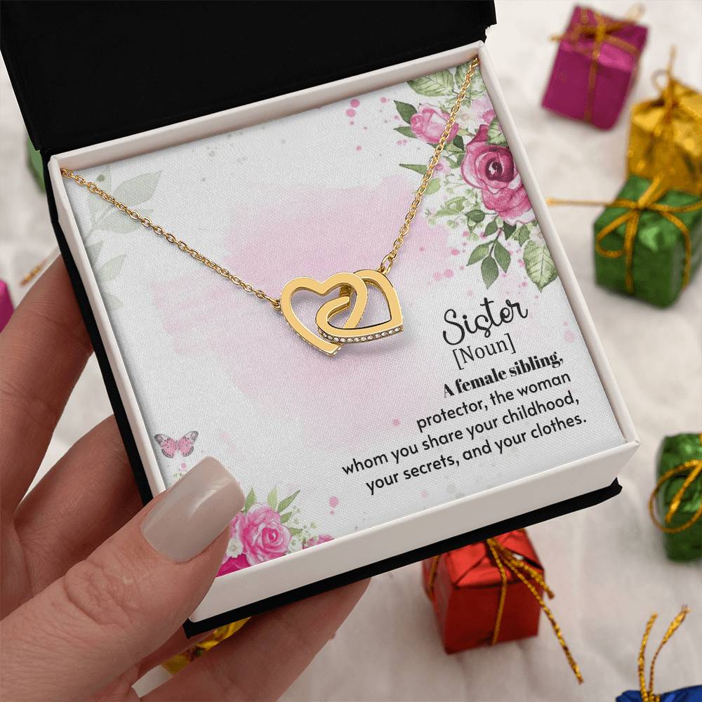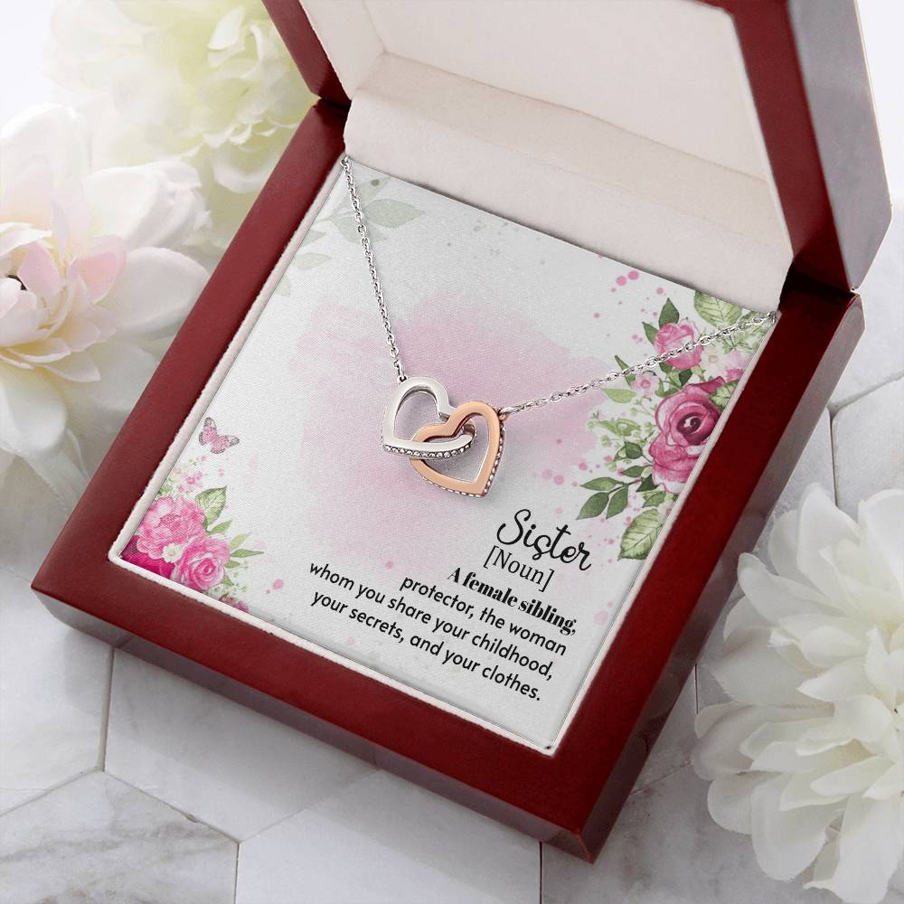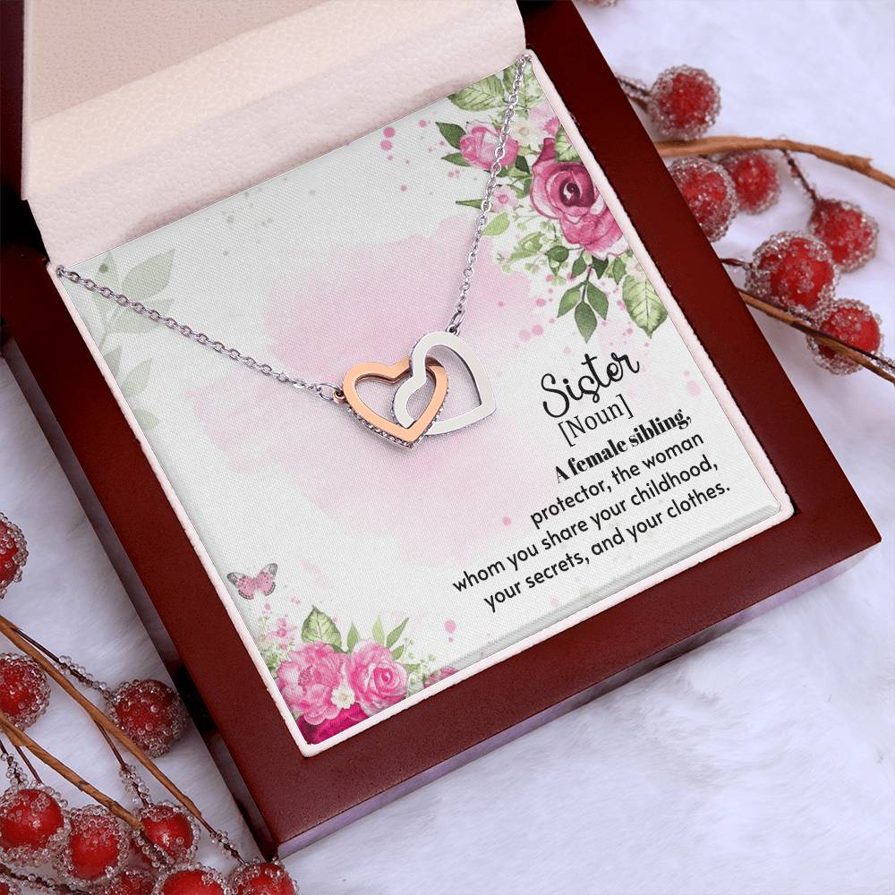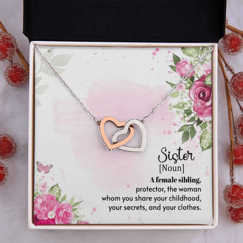 Share Your Childhood Your Secrets And Your Clothes 18K Rose Gold Interlocking Hearts Necklace Jewelry – Beautiful Birthday Gift for Sister from Sister