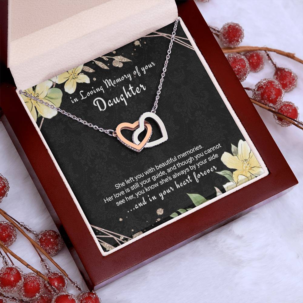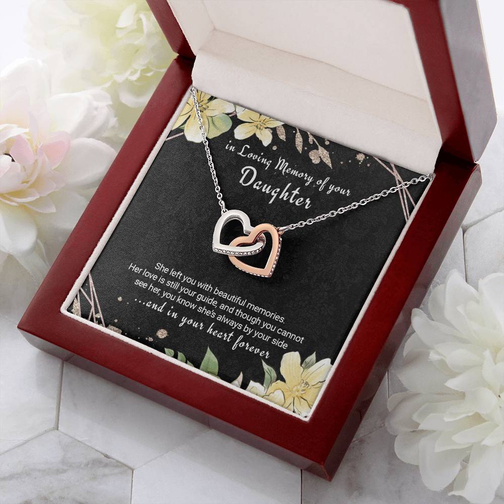 She Left You With Beautiful Memories 18K Rose Gold Interlocking Hearts Necklace Jewelry Sympathy Memorial Gift for Loss of Daughter