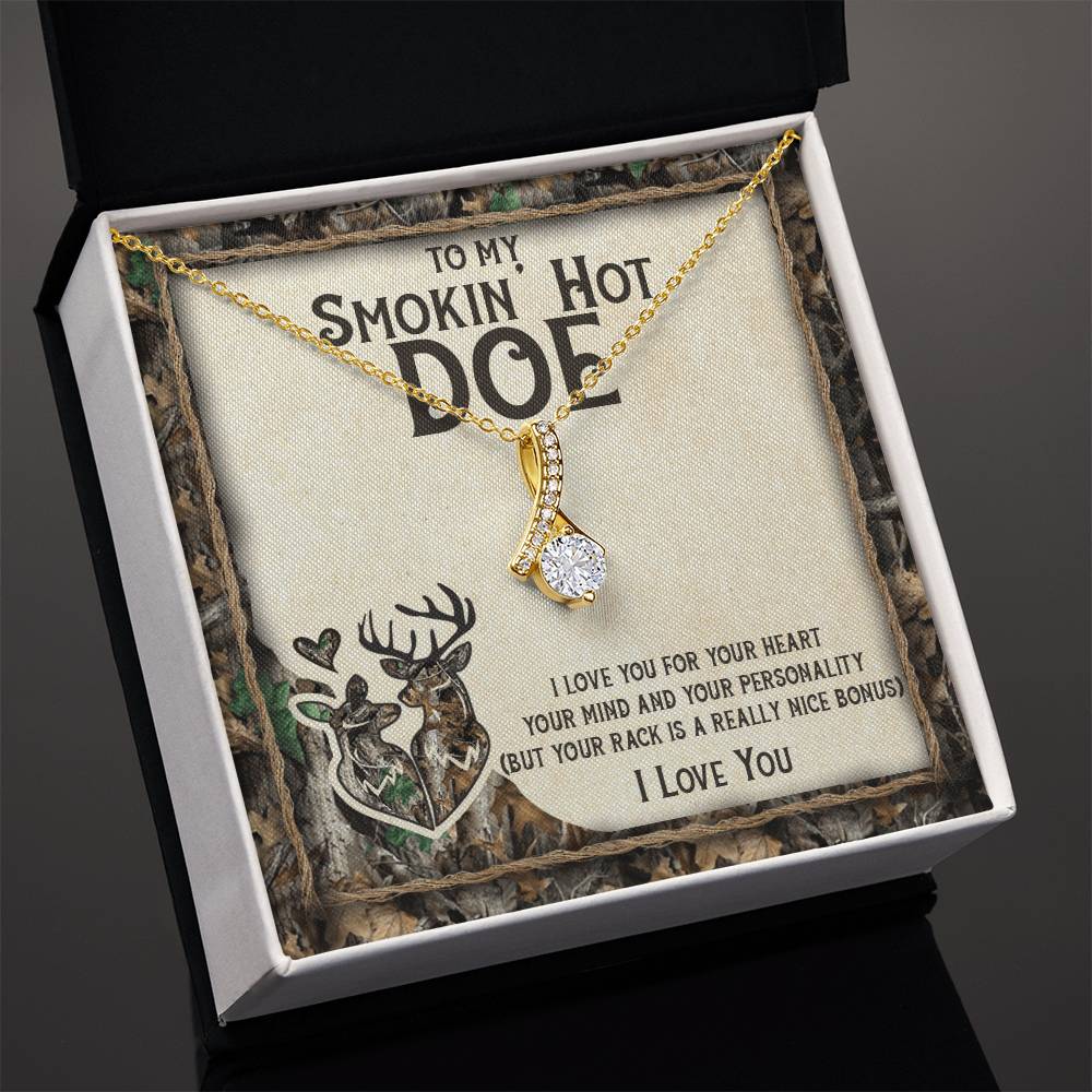 Smokin Hot Doe Love Heart Mind Personality 18K Yellow Gold Finish Alluring Beauty Necklace Jewelry Perfect Gift for Hunting Wife Anniversary