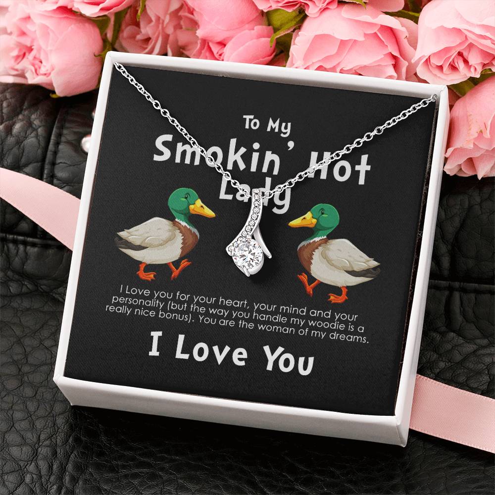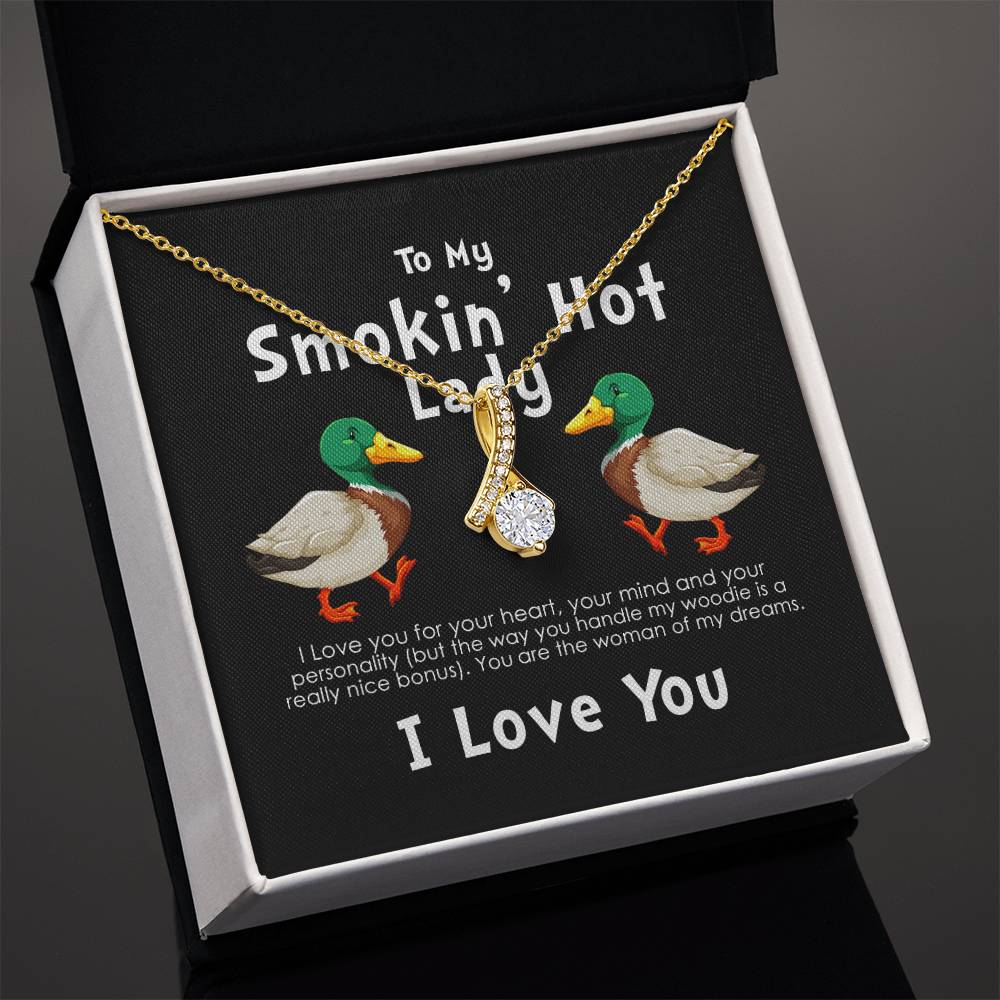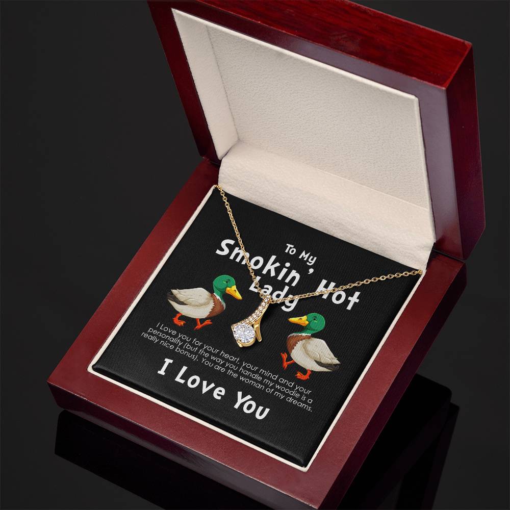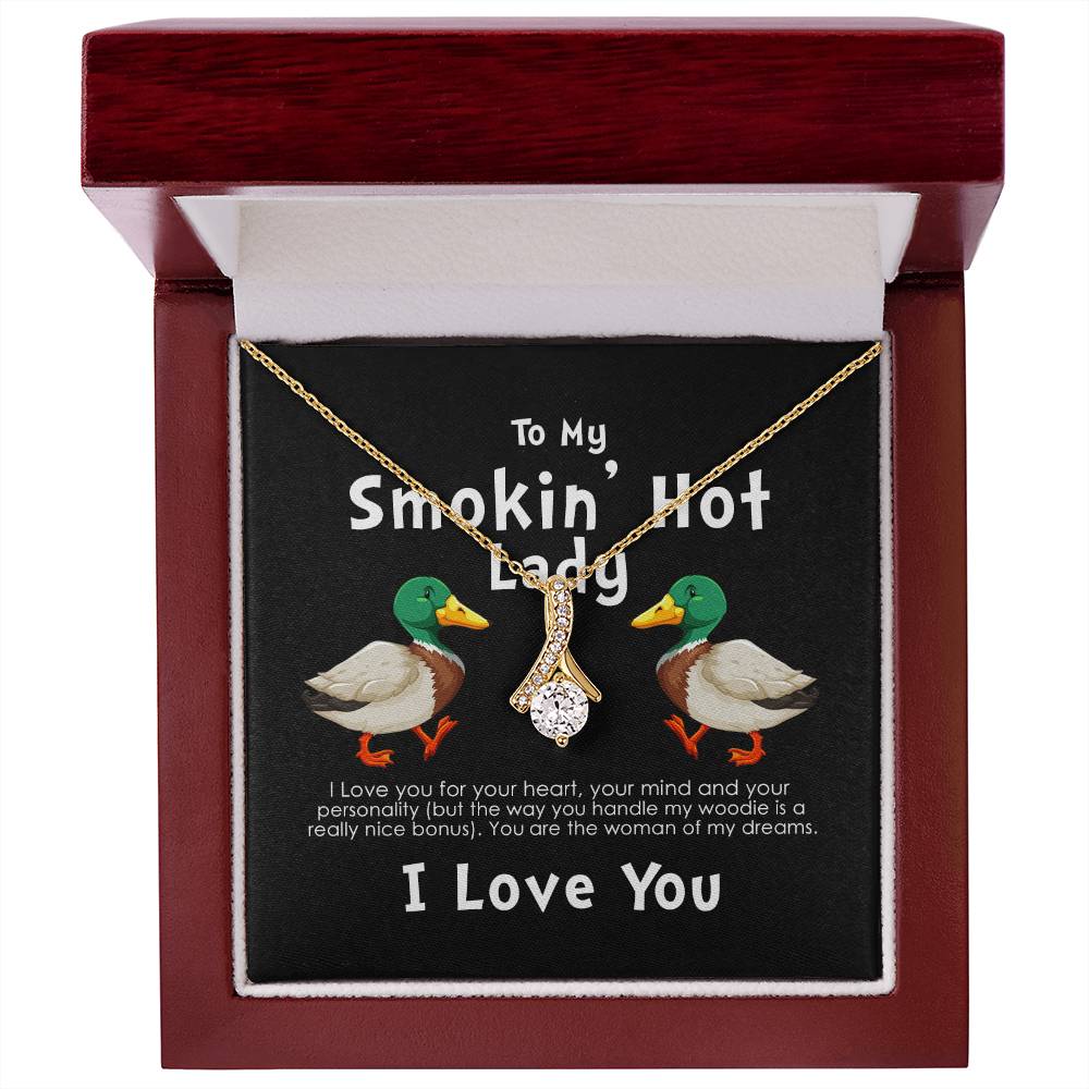 Smokin Hot Lady Handle My Woodie Duck 18K Yellow Gold Finish Alluring Beauty Necklace Jewelry Beautiful Gift for Duck Hunting Wife Anniversary