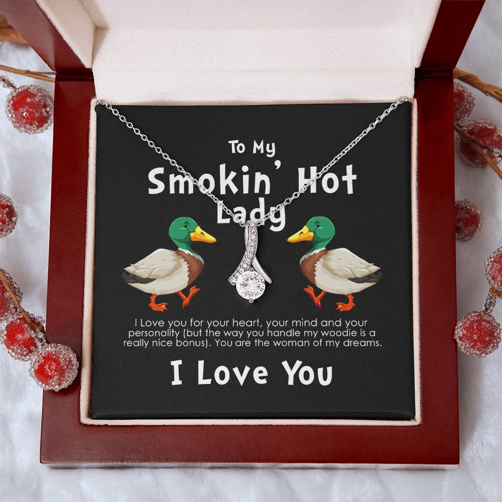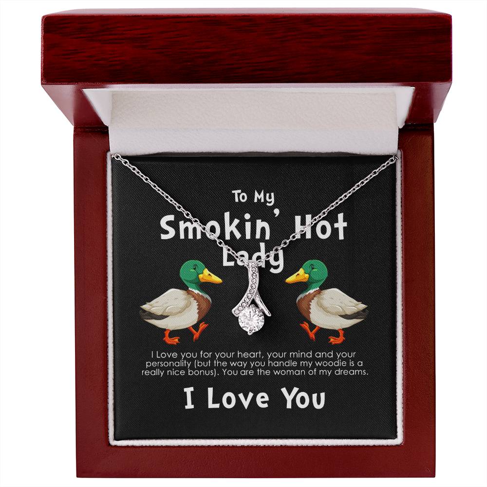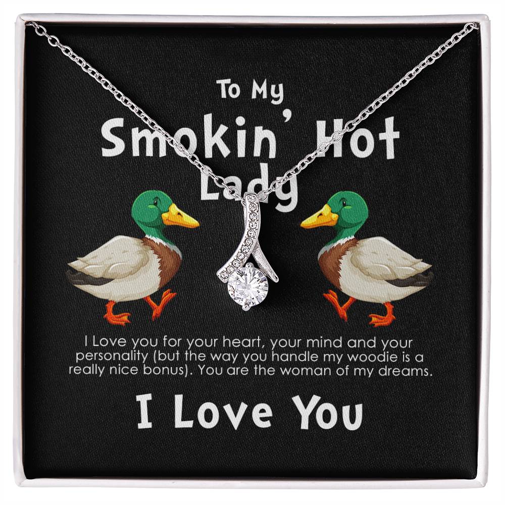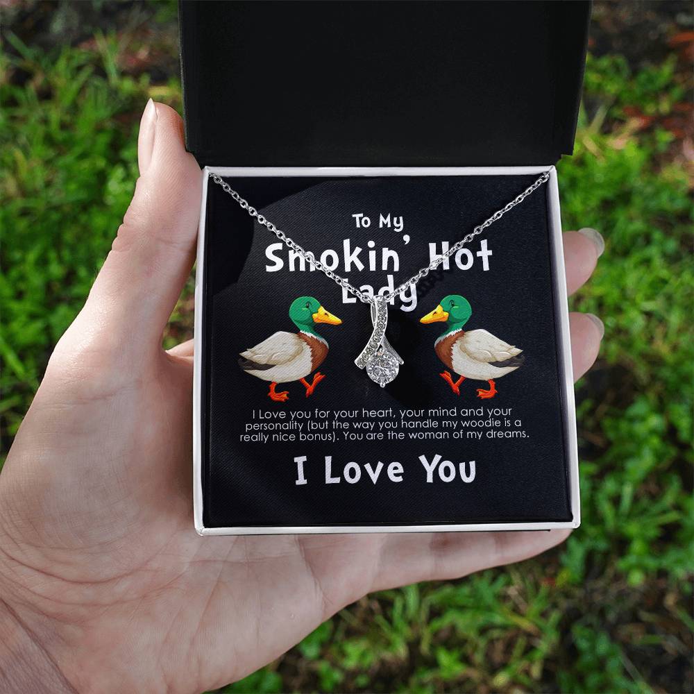 Smokin Hot Lady Handle My Woodie Duck 18K Yellow Gold Finish Alluring Beauty Necklace Jewelry Beautiful Gift for Duck Hunting Wife Anniversary