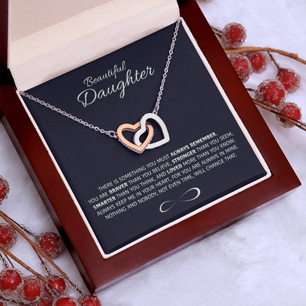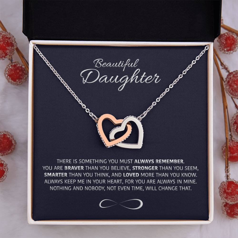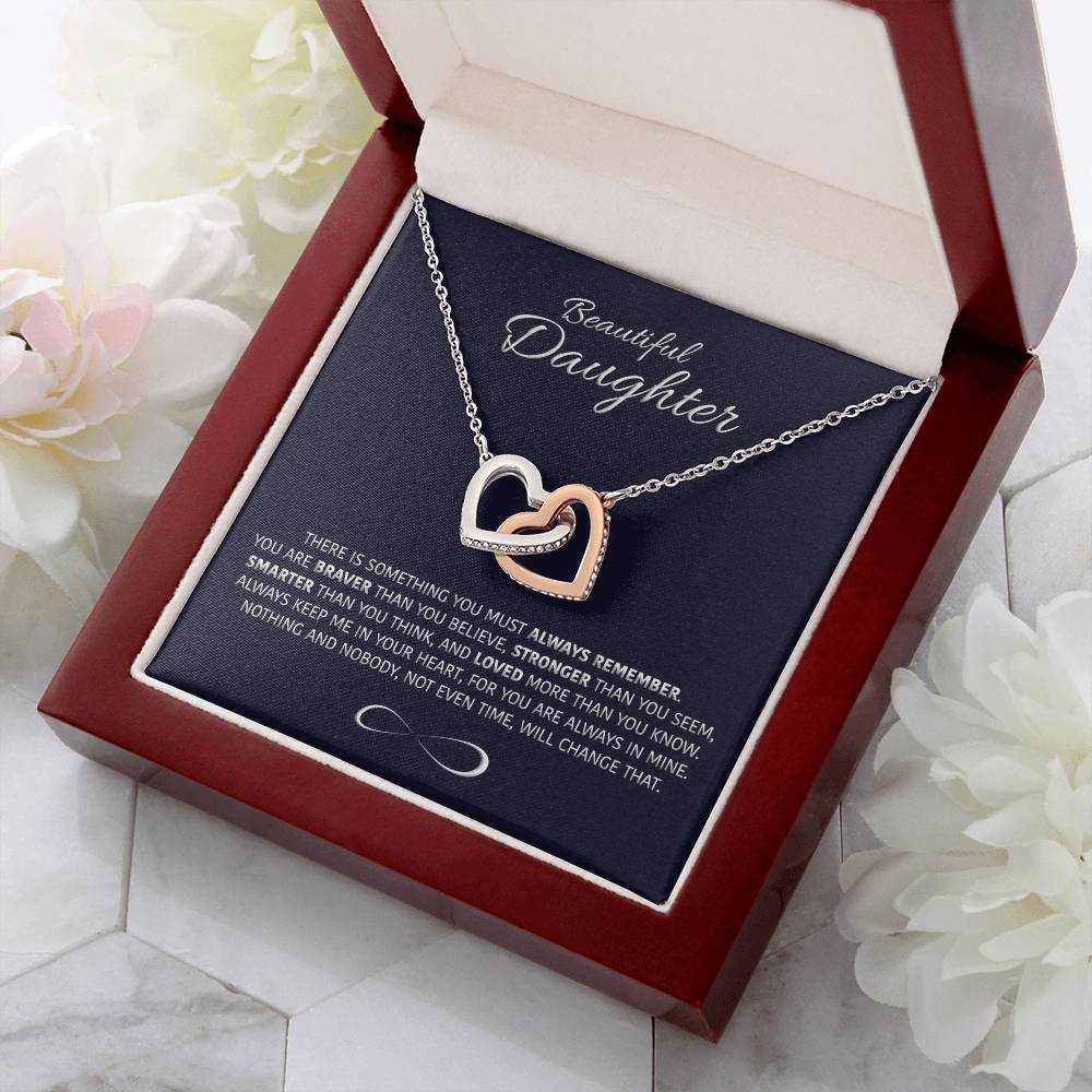 Something You Must Always Remember 18K Rose Gold Interlocking Hearts Necklace Jewelry – Beautiful Motivation Gift for Daughter