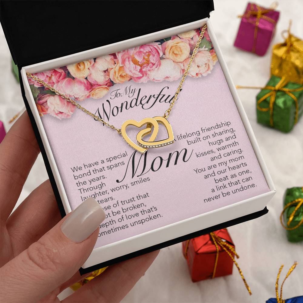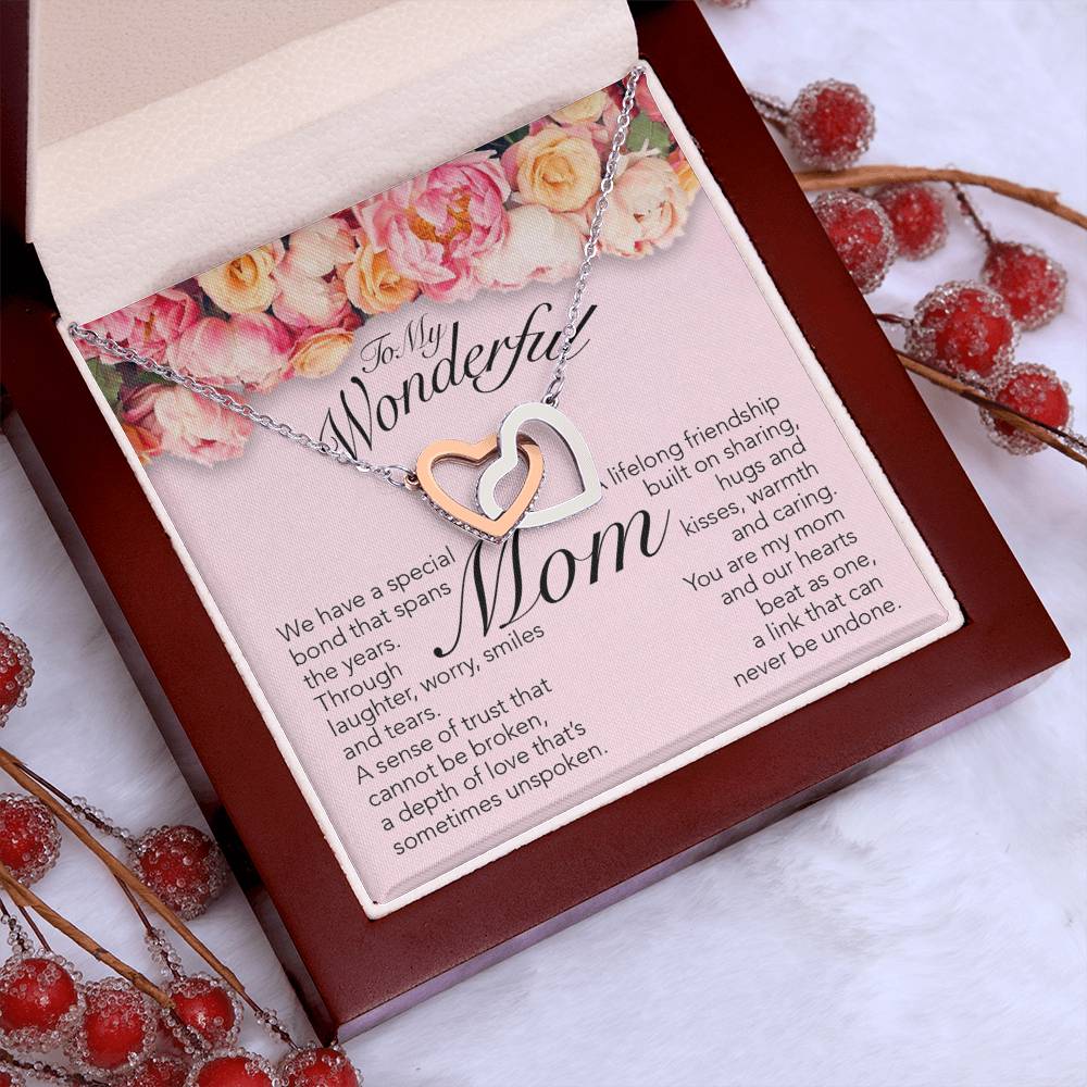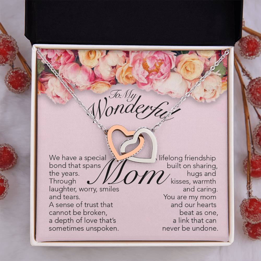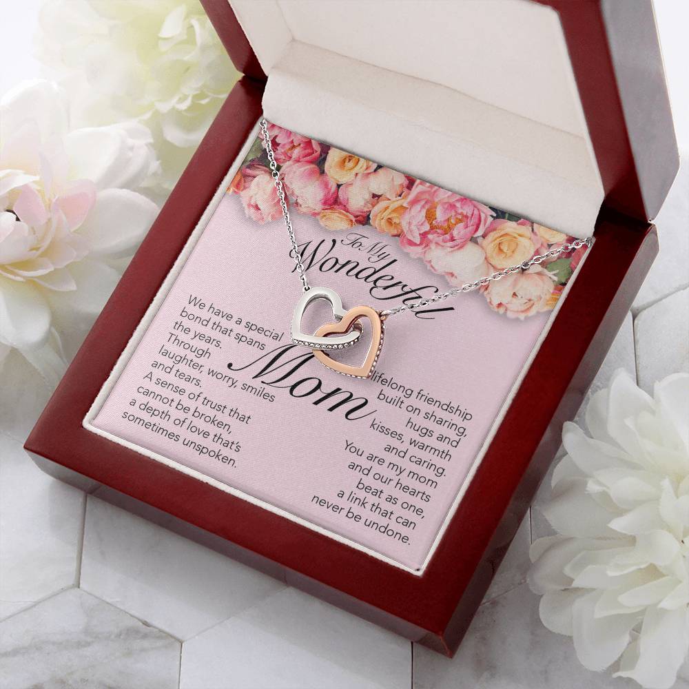 Special Bond That Spans The Years 18K Rose Gold Interlocking Hearts Necklace Jewelry – Beautiful Birthday Gift for Mom from Daughter