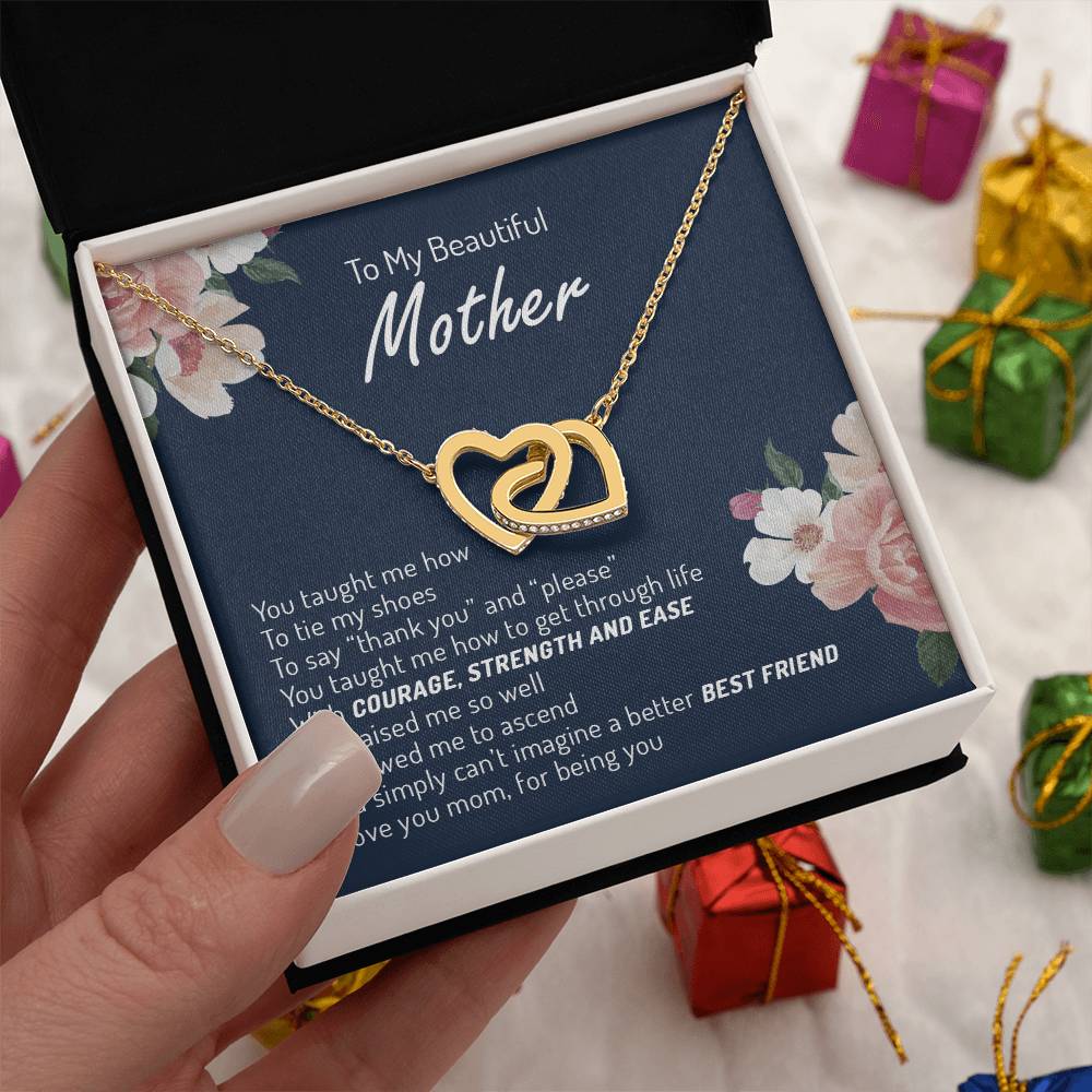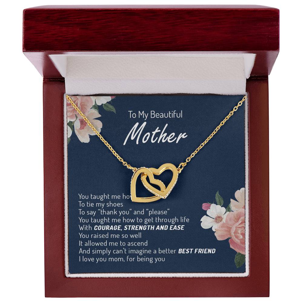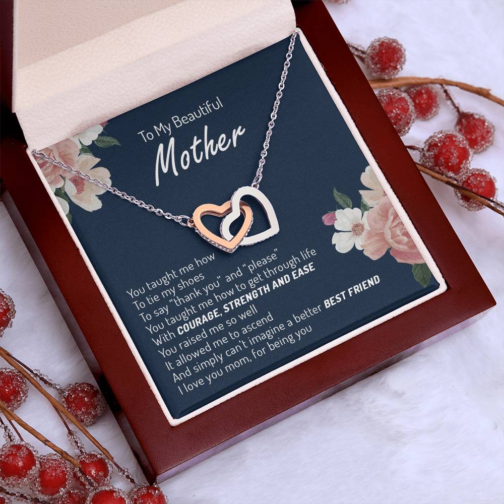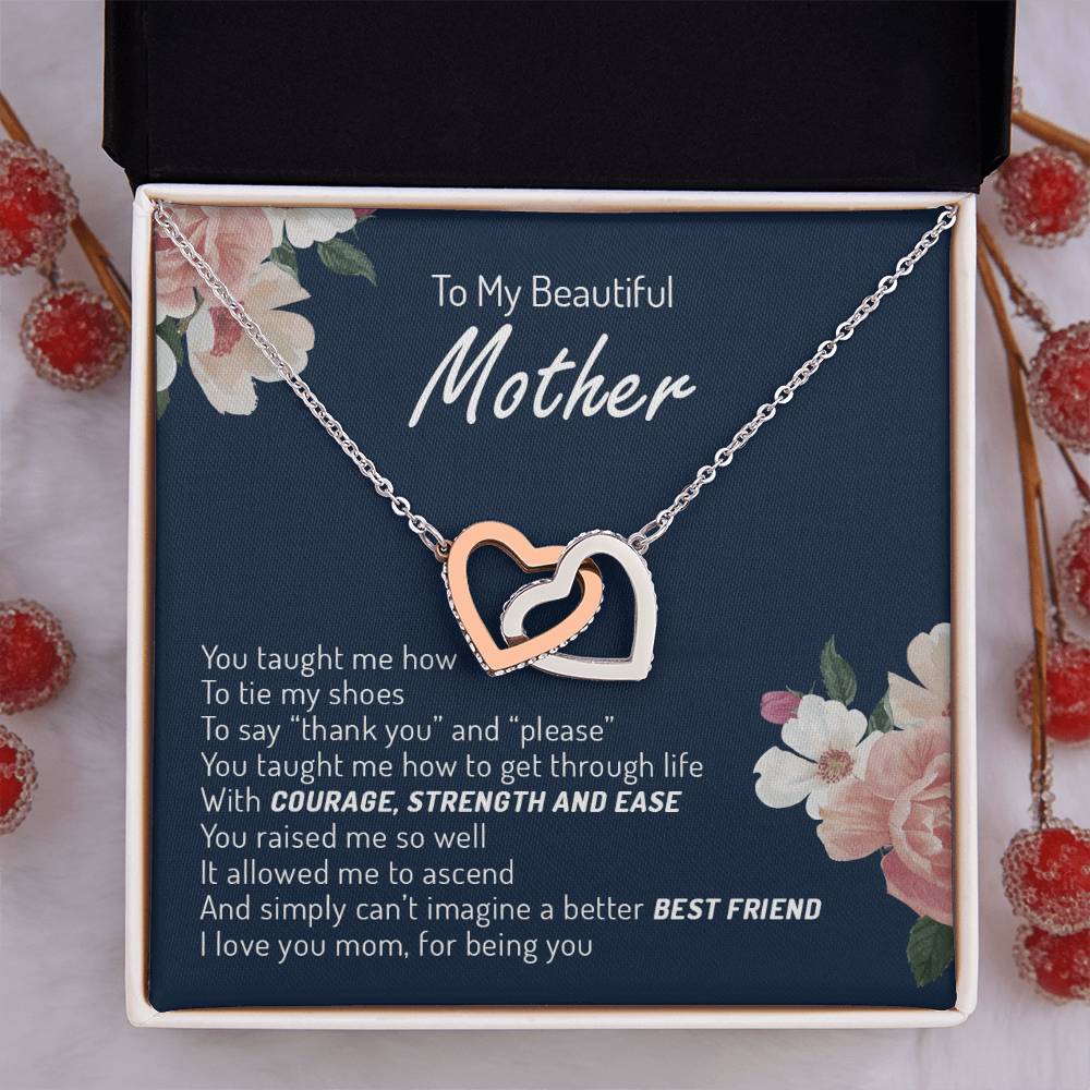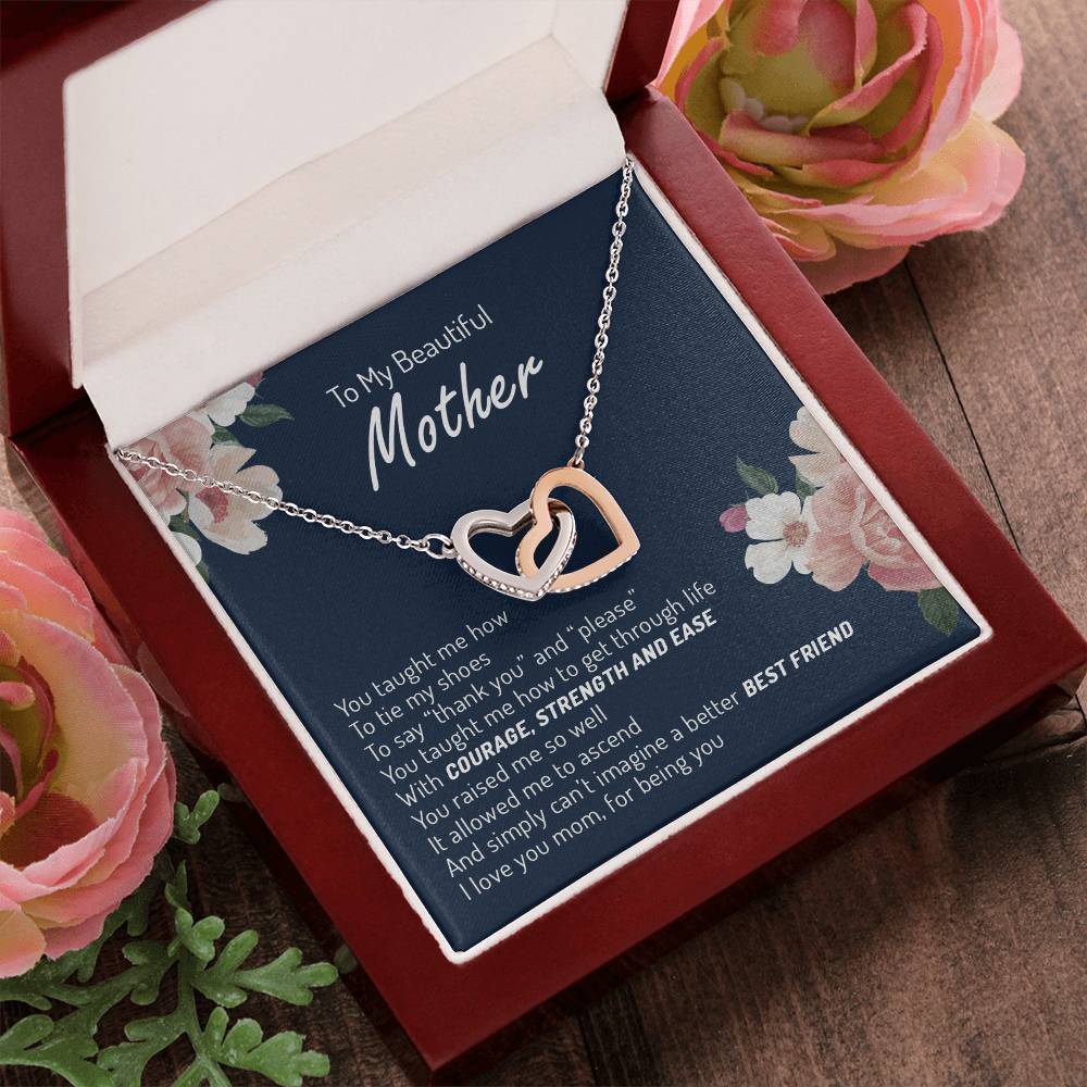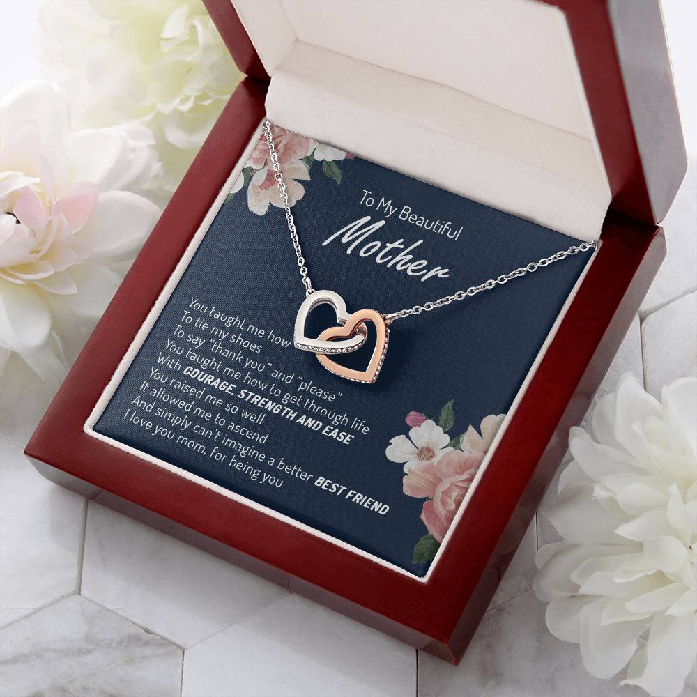Through Life With Courage Strength And Ease 18K Rose Gold Interlocking Hearts Necklace Jewelry – Beautiful Gift for Mother from Daughter