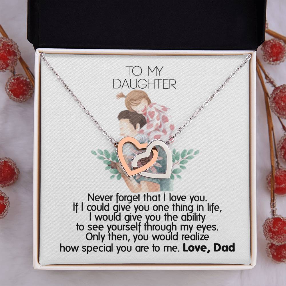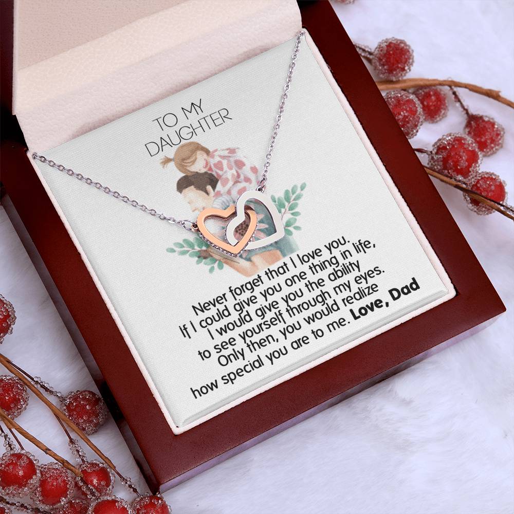 Through My Eyes That’s How Special You Are 18K Rose Gold Interlocking Hearts Necklace Jewelry Unique Gift for Daughter from Dad