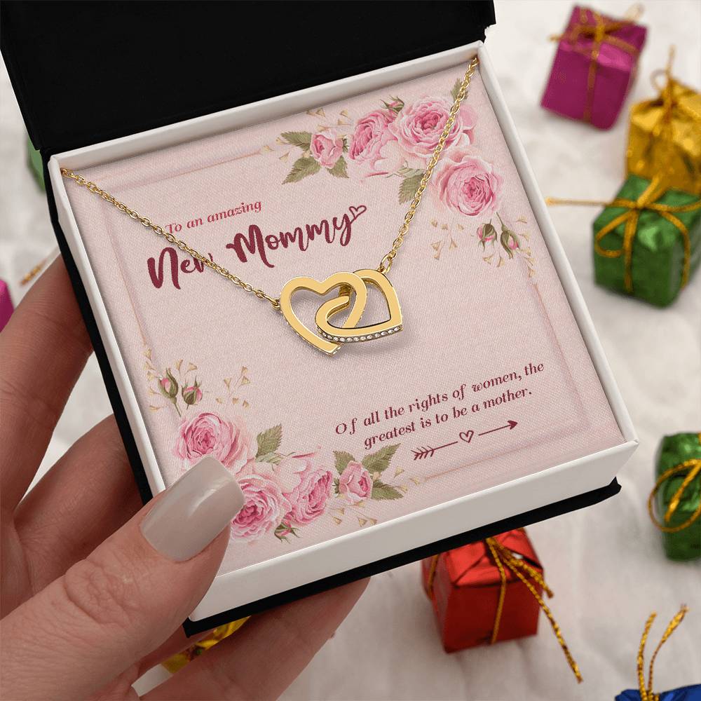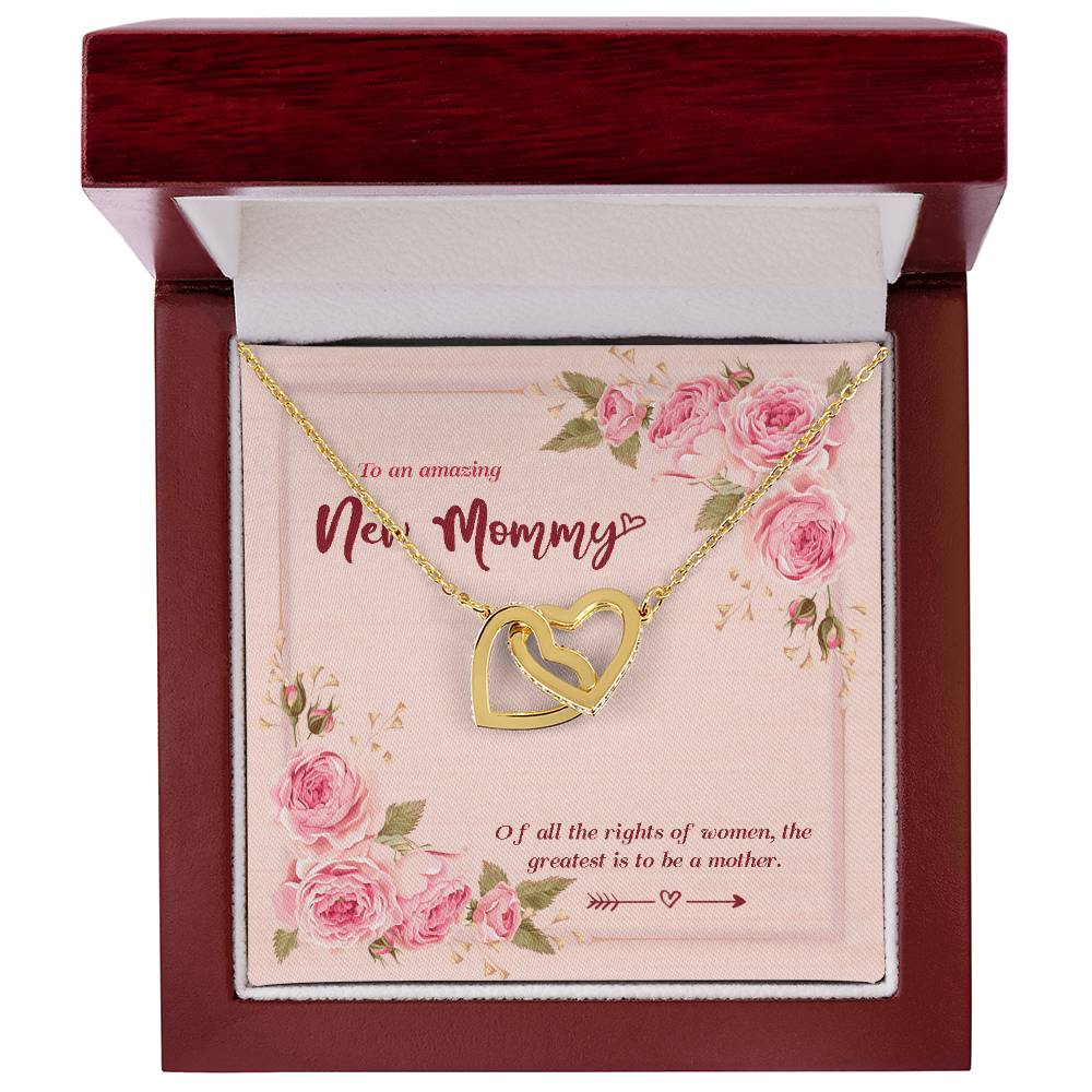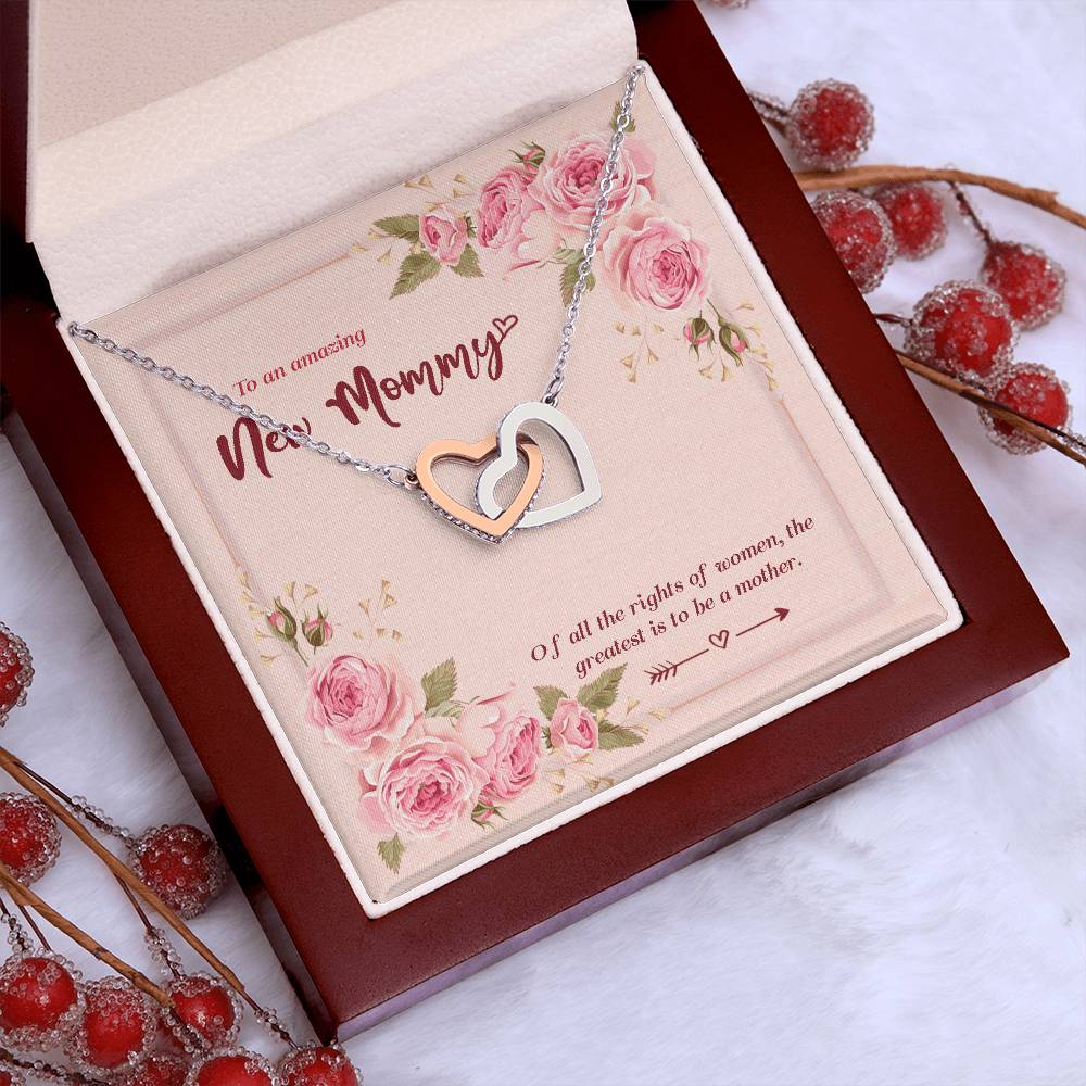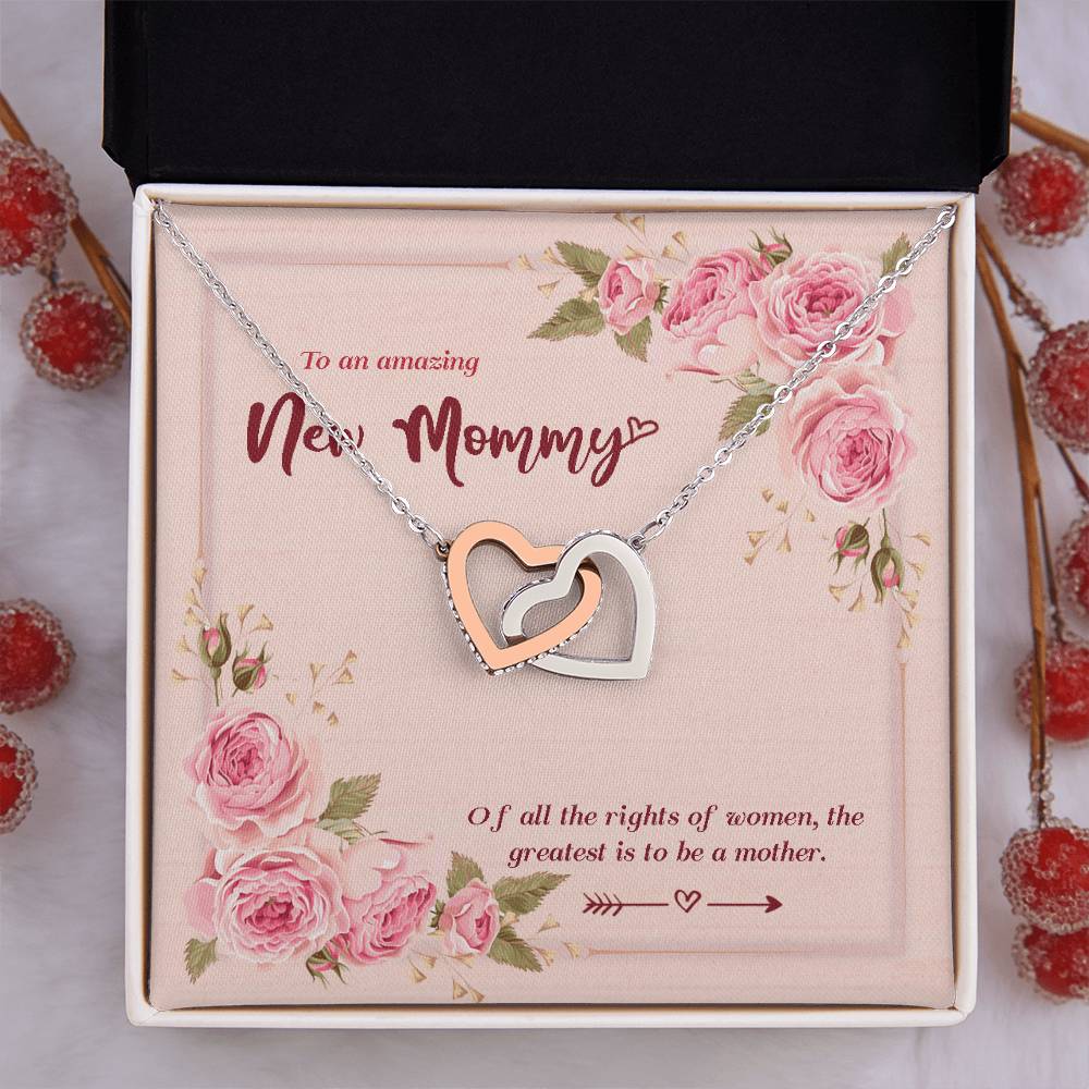 To An Amazing New Mommy 18K Rose Gold Interlocking Hearts Necklace Jewelry Special Gift for Mom To Be Baby Shower