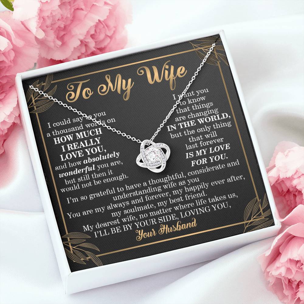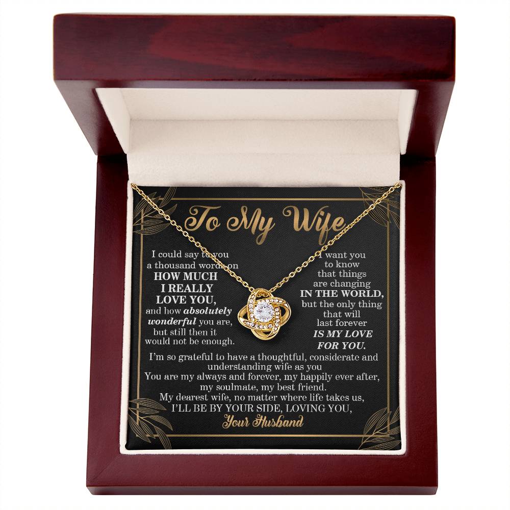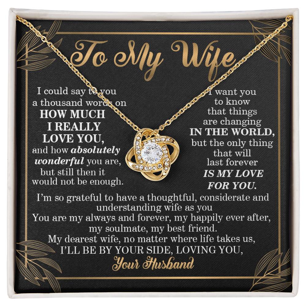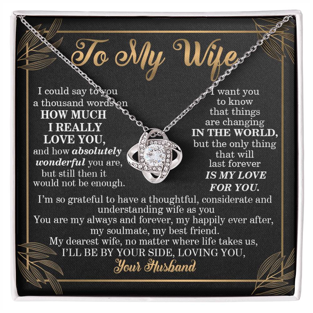 To My Wife How Much Really Love You Absolutely Wonderful My Love For You Last Forever 14K Gold Love Knot Necklace Jewelry Romantic Gift for Wife Anniversary