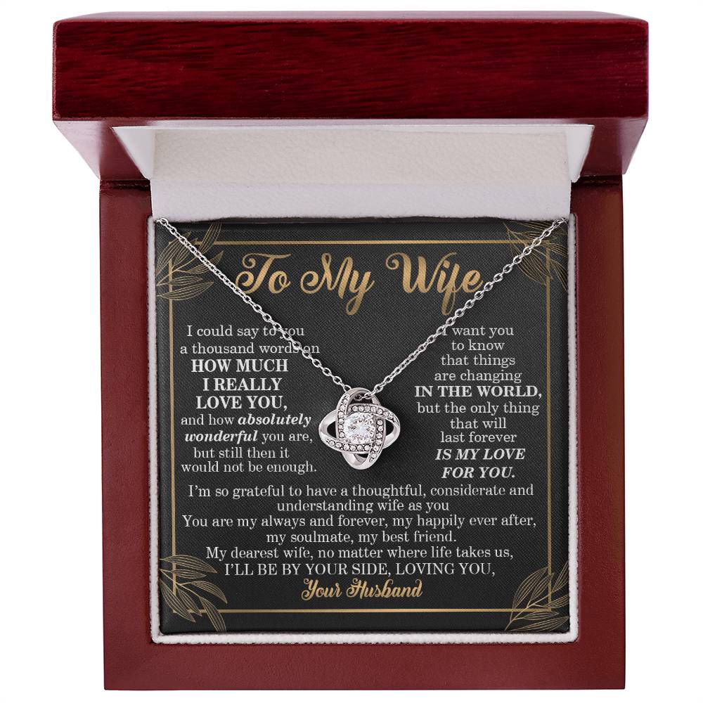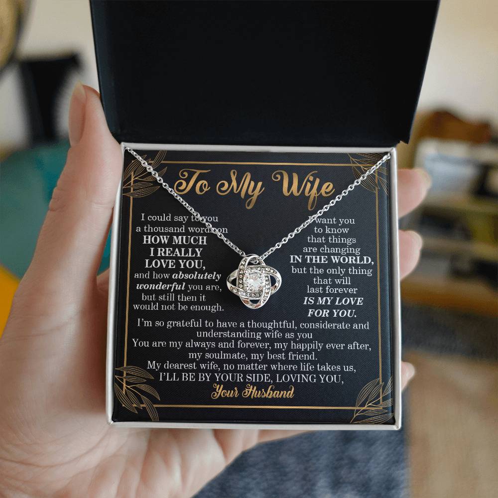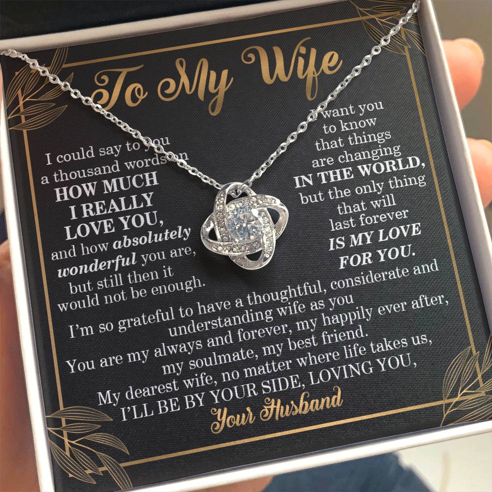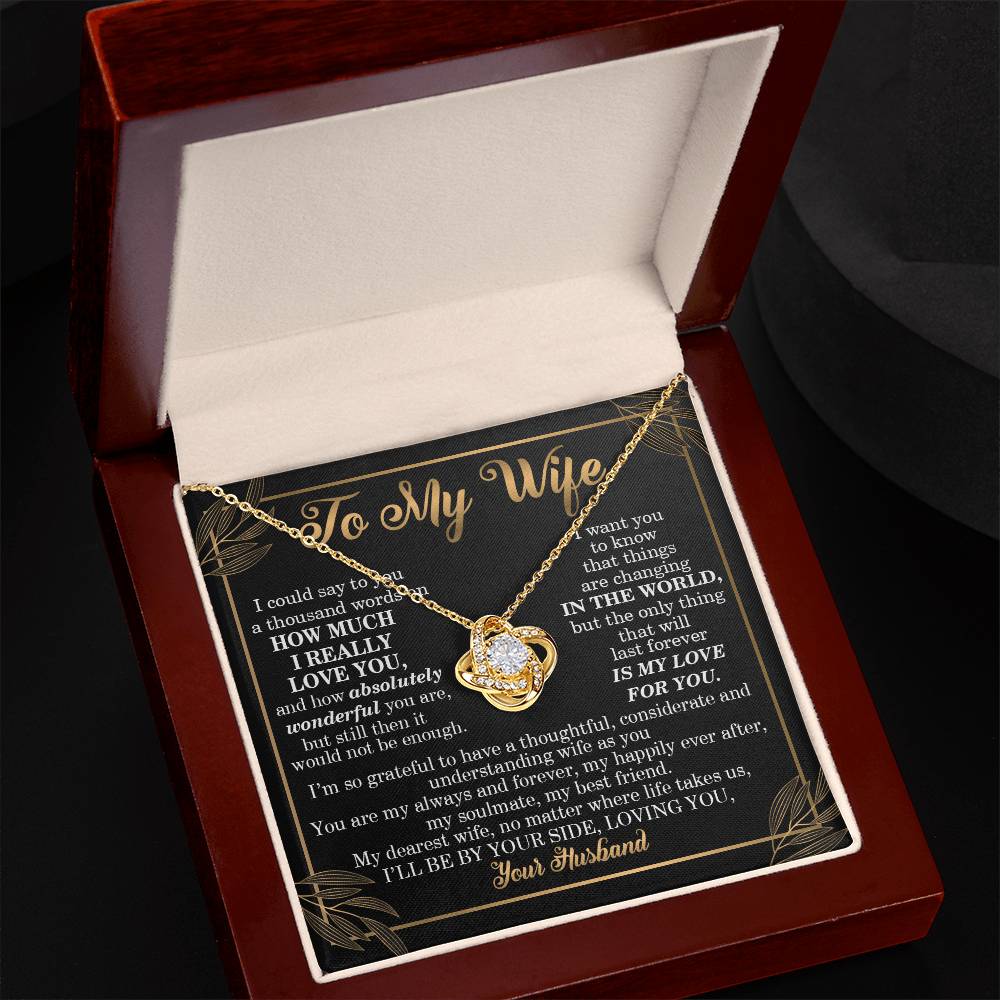 To My Wife How Much Really Love You Absolutely Wonderful My Love For You Last Forever 14K Gold Love Knot Necklace Jewelry Romantic Gift for Wife Anniversary