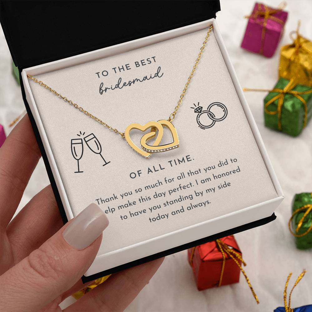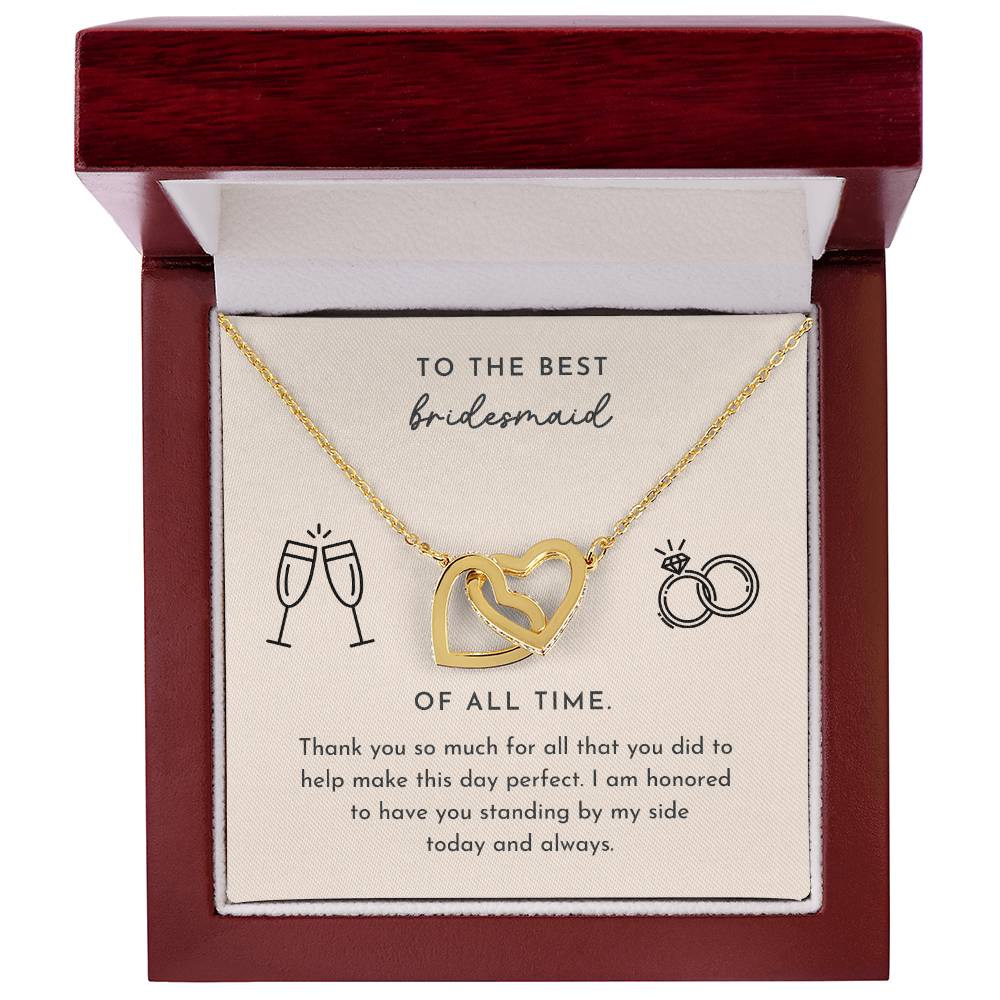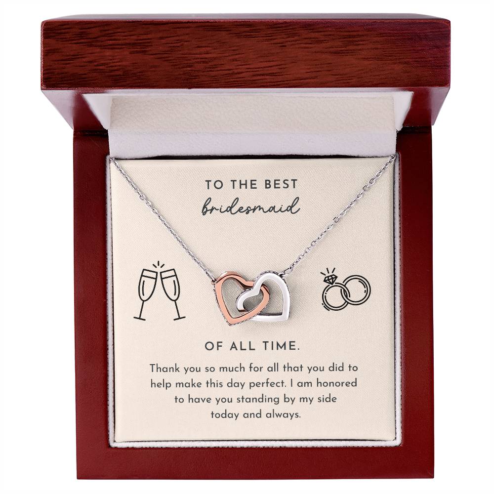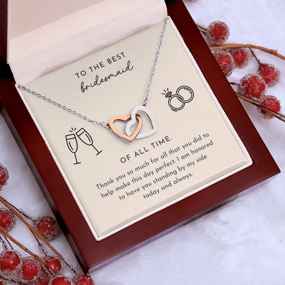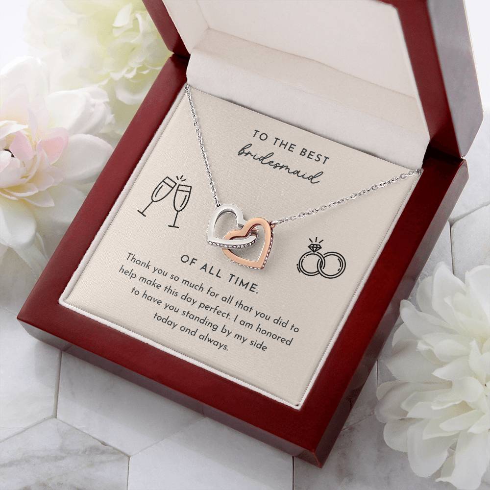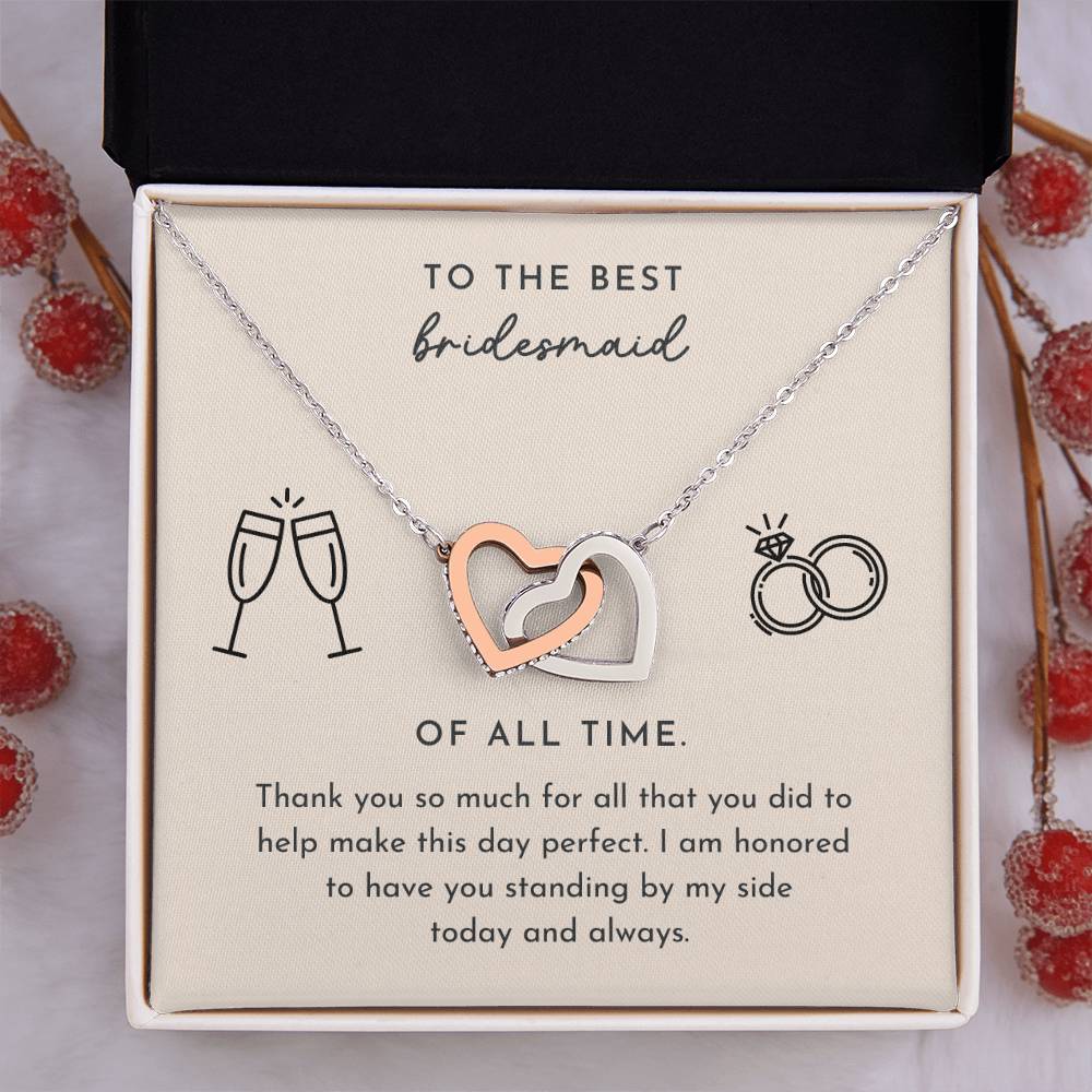 To The Best Bridesmaid Of All Time 18K Rose Gold Interlocking Hearts Necklace Jewelry Perfect Wedding Thank You Gift for Bridesmaid