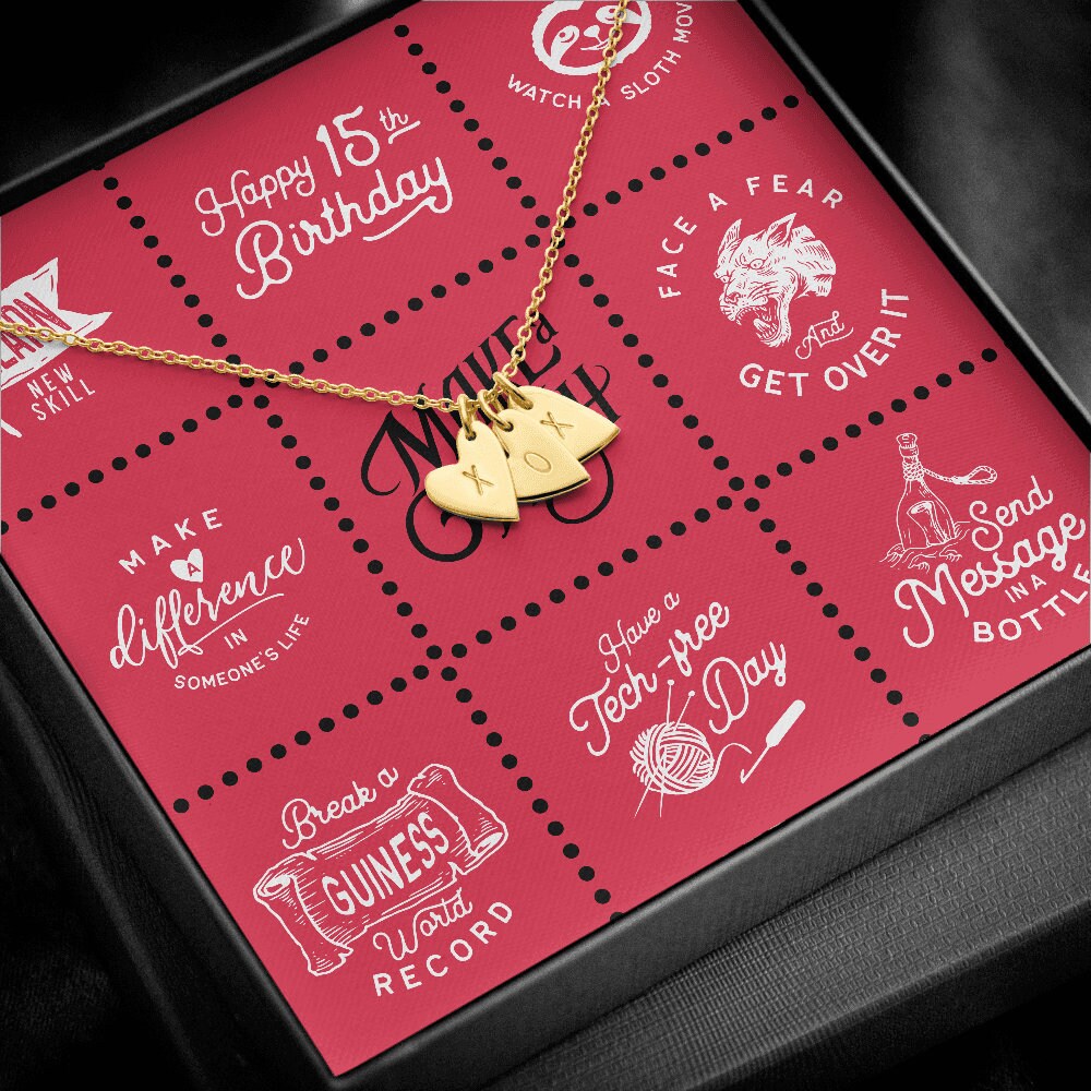 15th Birthday Gift for Girl: Personalized Heart Charms Necklace