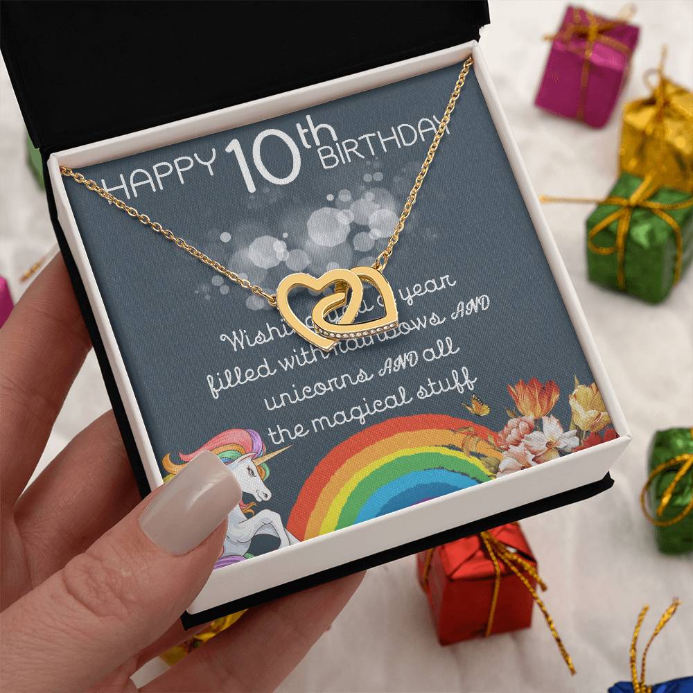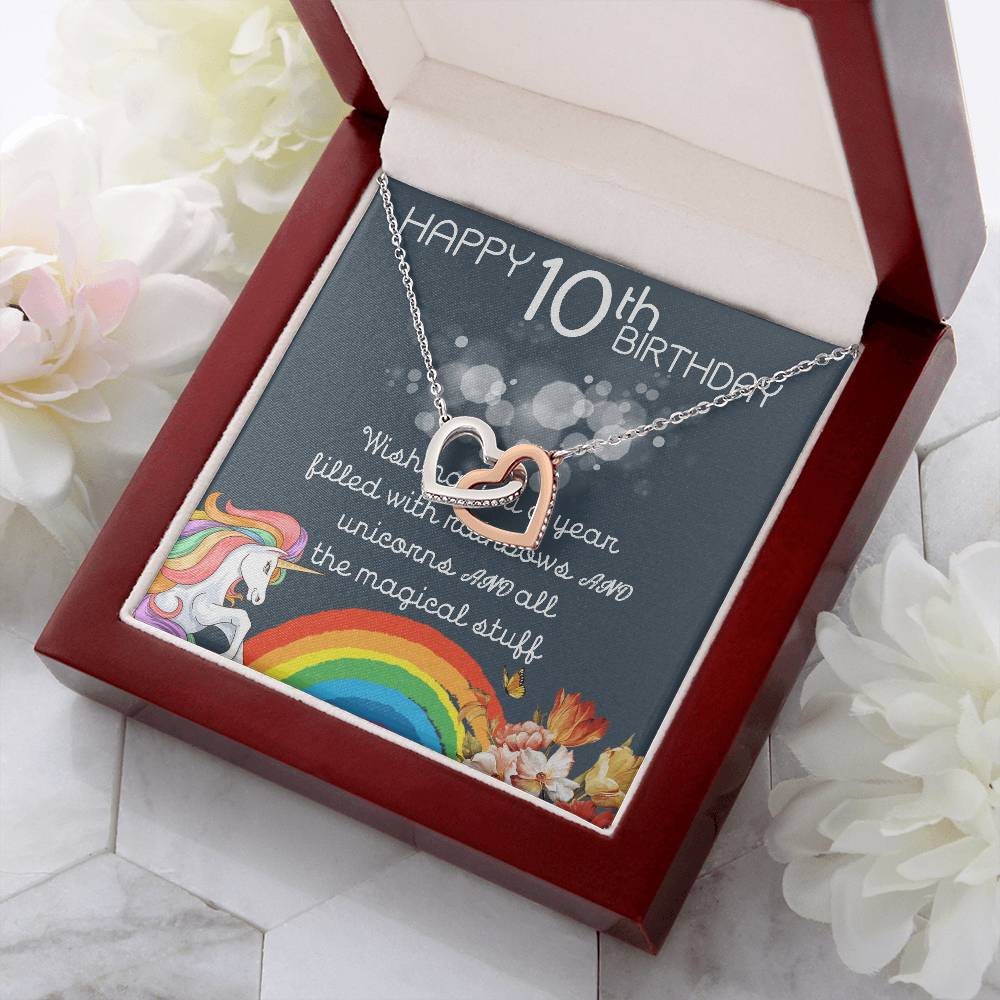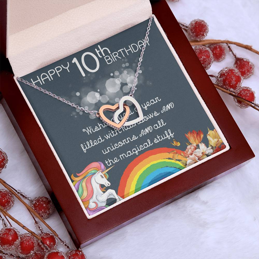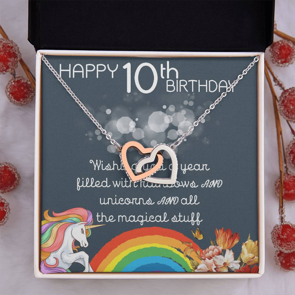 Wishing You A Year Filled With Rainbows And Unicorns 18K Rose Gold Interlocking Hearts Necklace Jewelry – Magical 10th Birthday Gift for Daughter from Mom