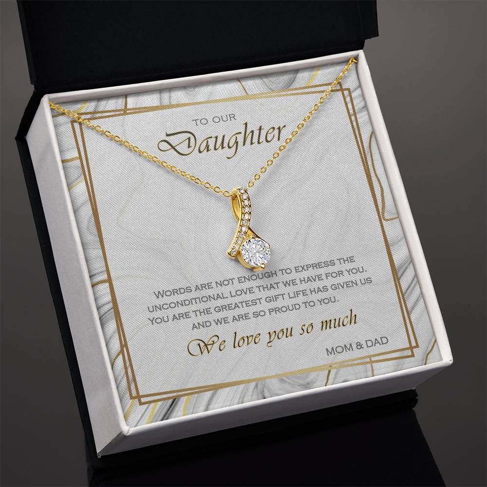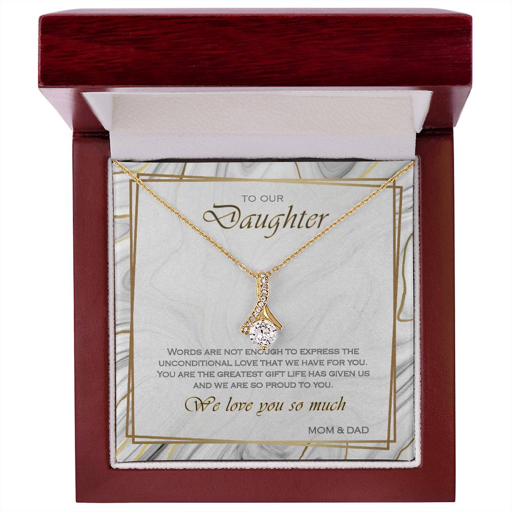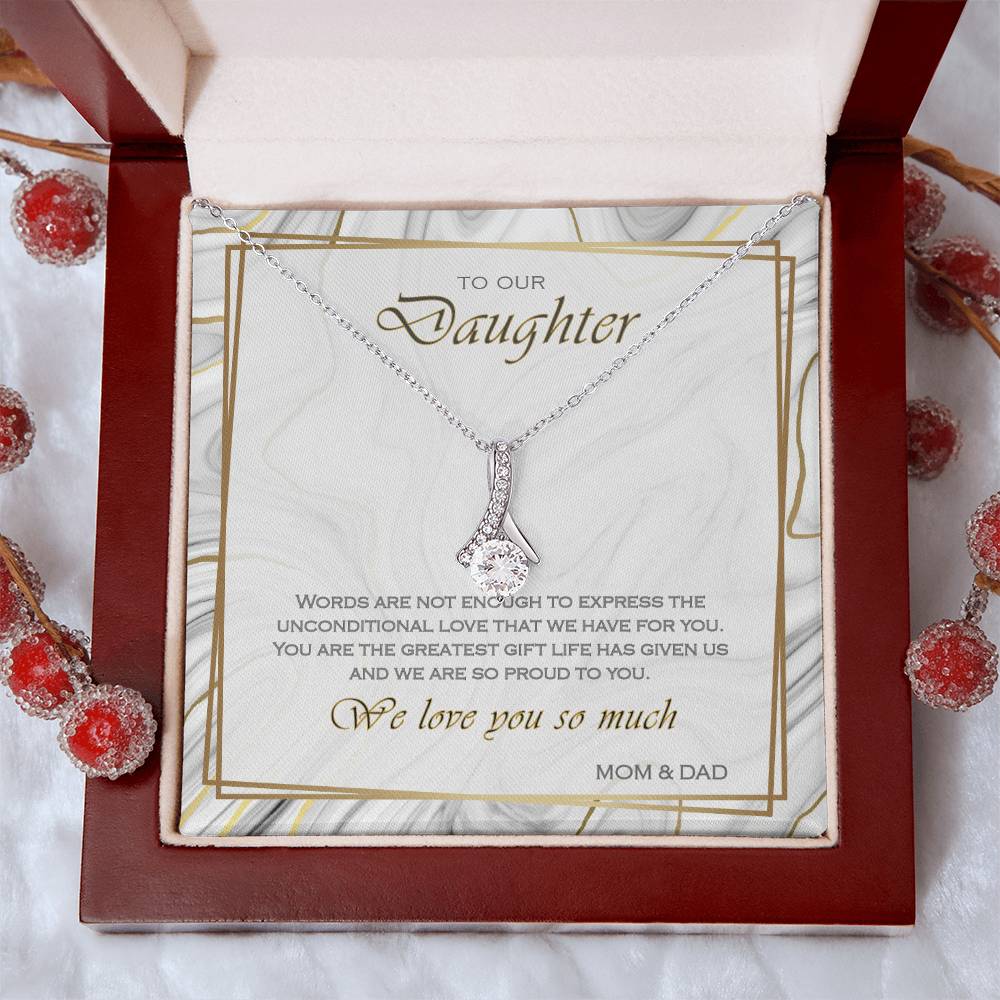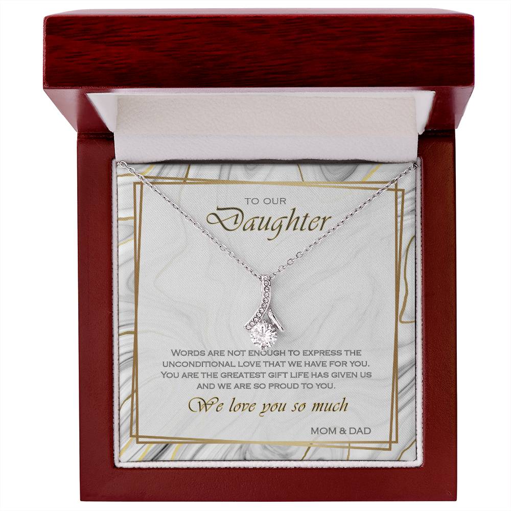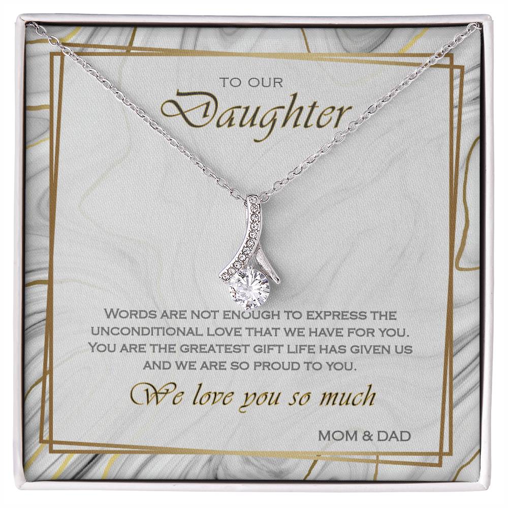 Words Are Not Enough Beautiful Daughter Marble Card 14K White Gold Finish Alluring Beauty Necklace Jewelry Heartfelt Gift from Parents