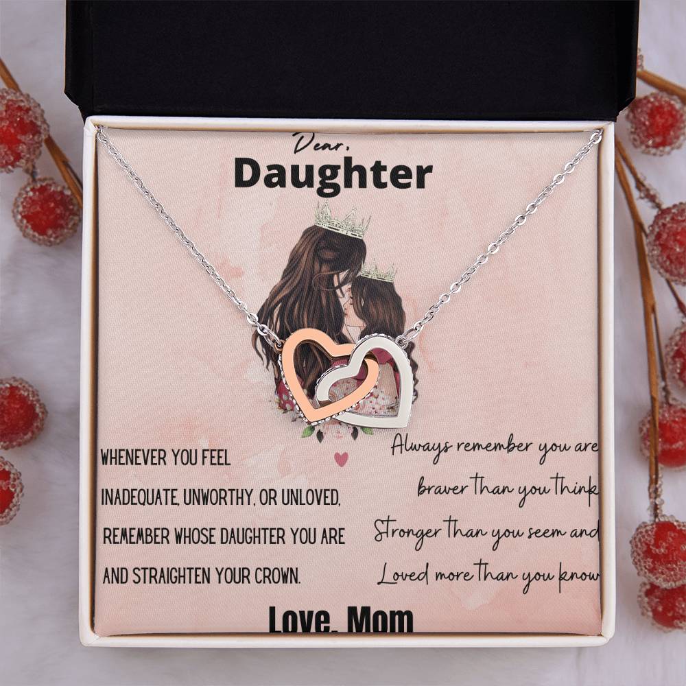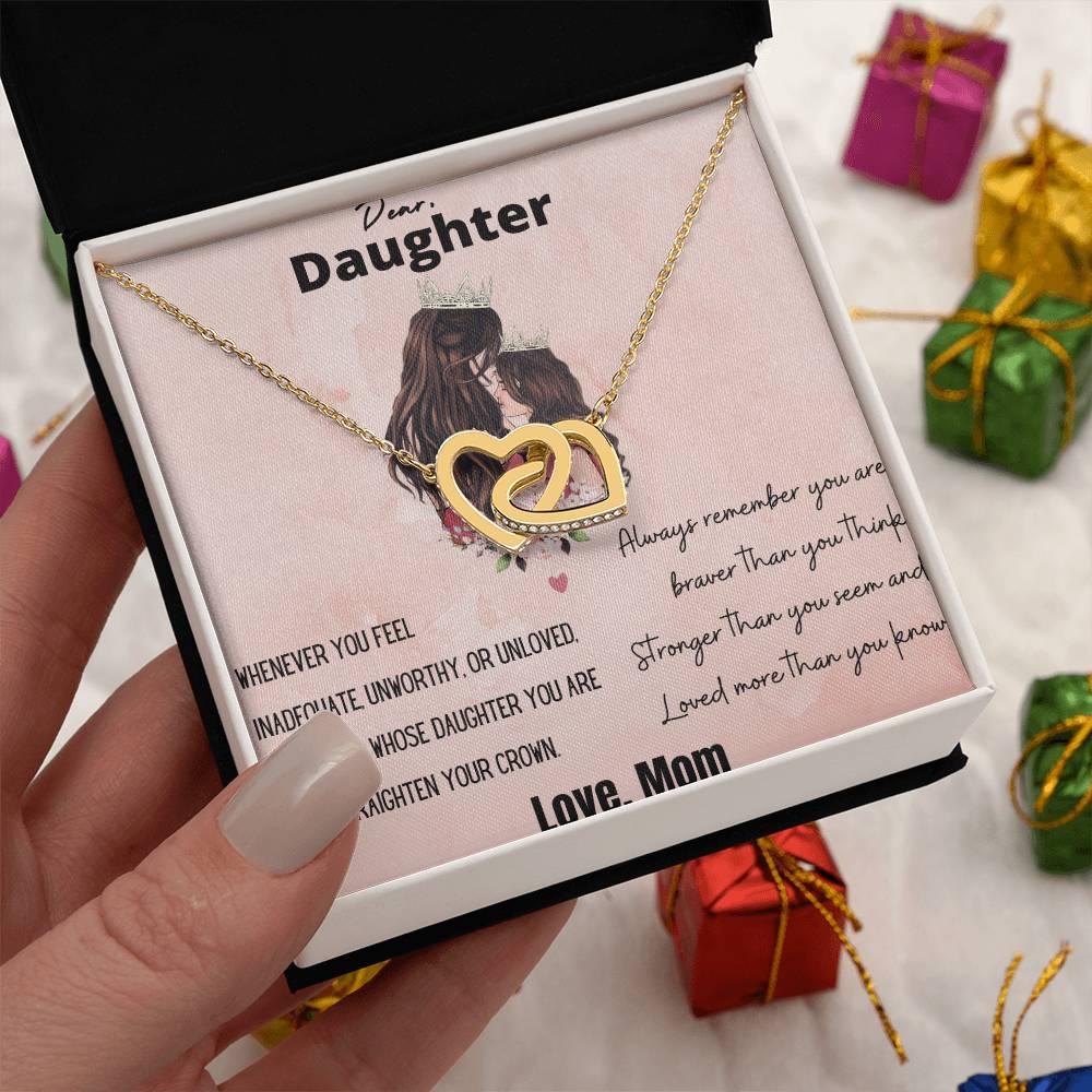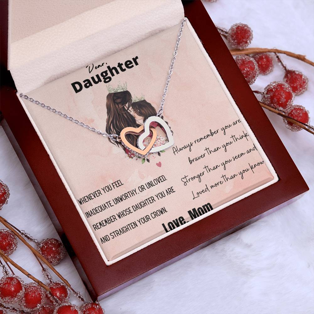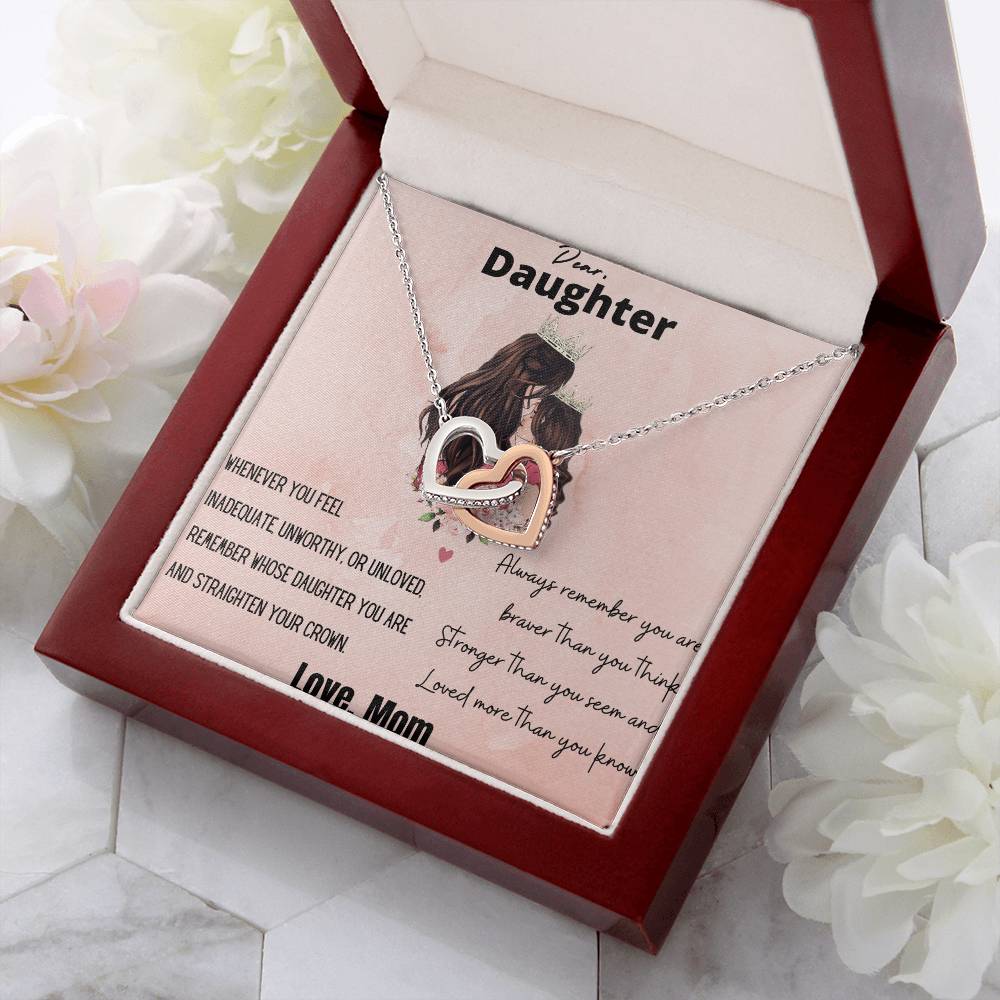 You Are And Straighten Your Crown 18K Rose Gold Interlocking Hearts Necklace Jewelry Motivational Gift for Daughter from Mom