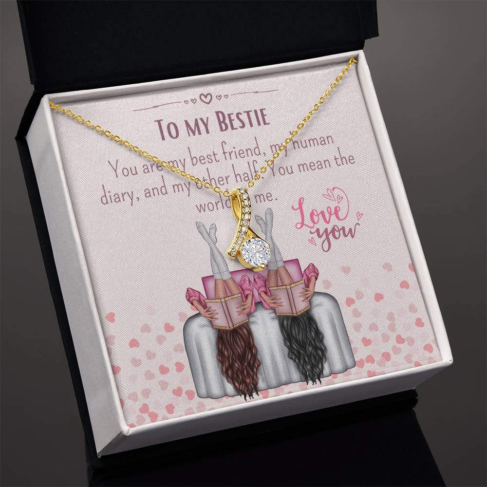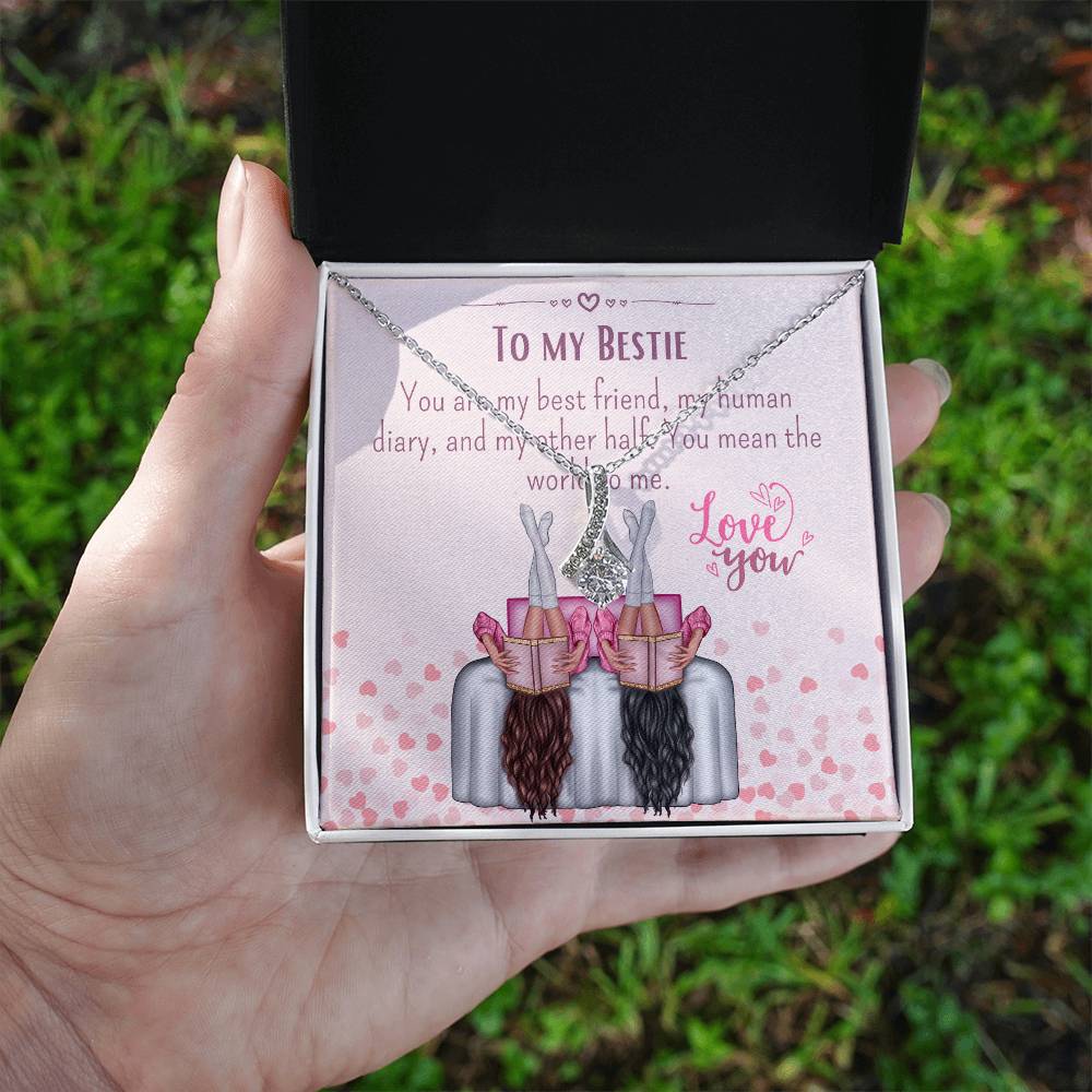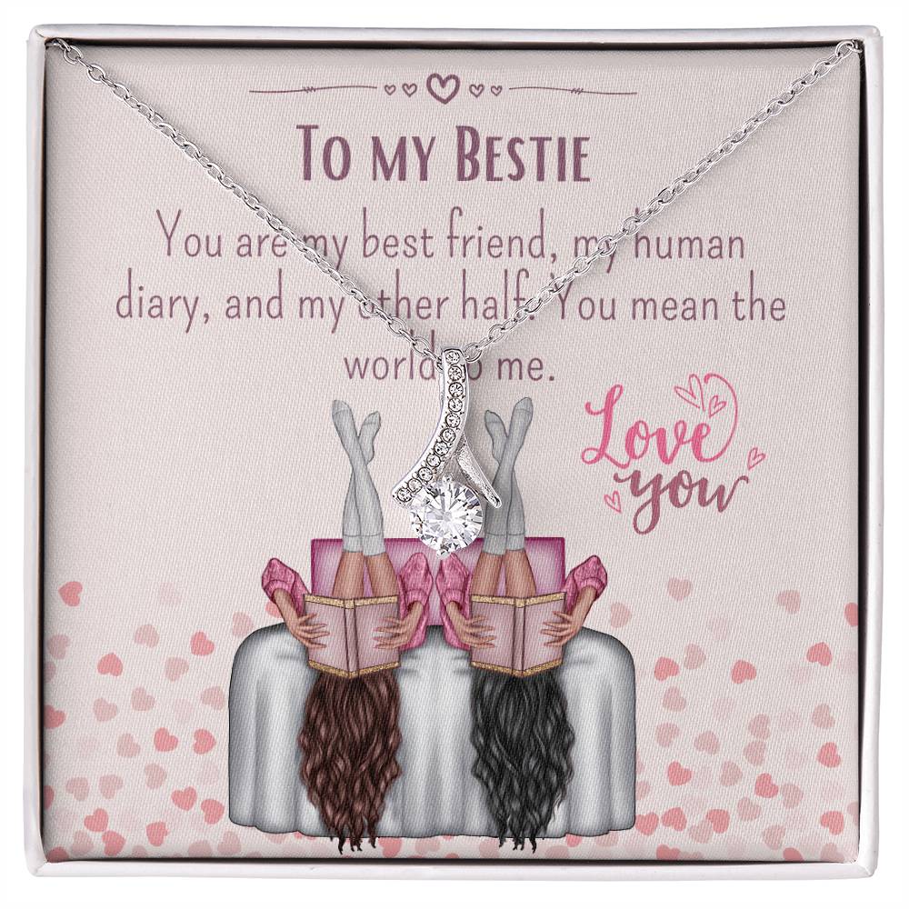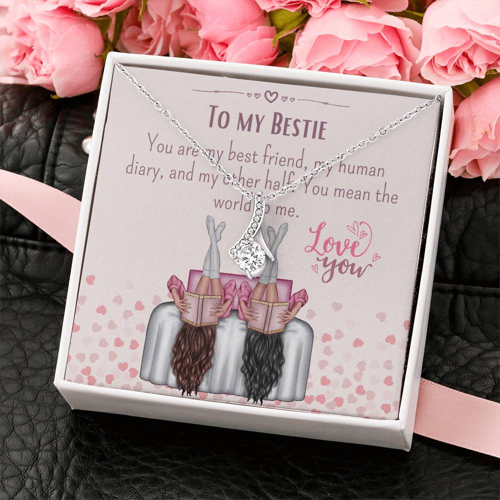 You Mean The World To Me 14K White Gold Finish Alluring Beauty Necklace Jewelry Deep Affection Bestie Bond
