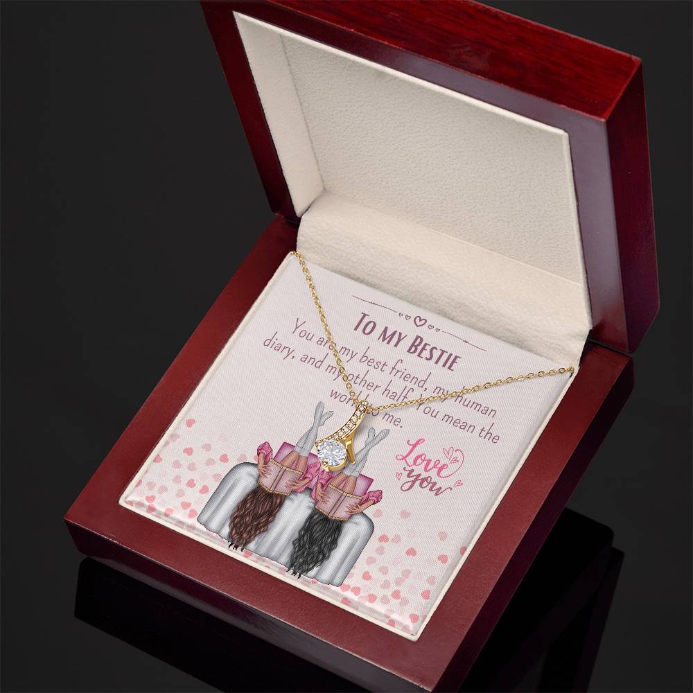 Transform any holiday moment into pure magic! The Alluring Beauty Necklace features an exquisite ribbon-shaped pendant that captures and reflects light with every movement, creating a mesmerizing sparkle that's impossible to ignore. This isn't just jewelry – it's a promise of elegance that she'll treasure for years to come.