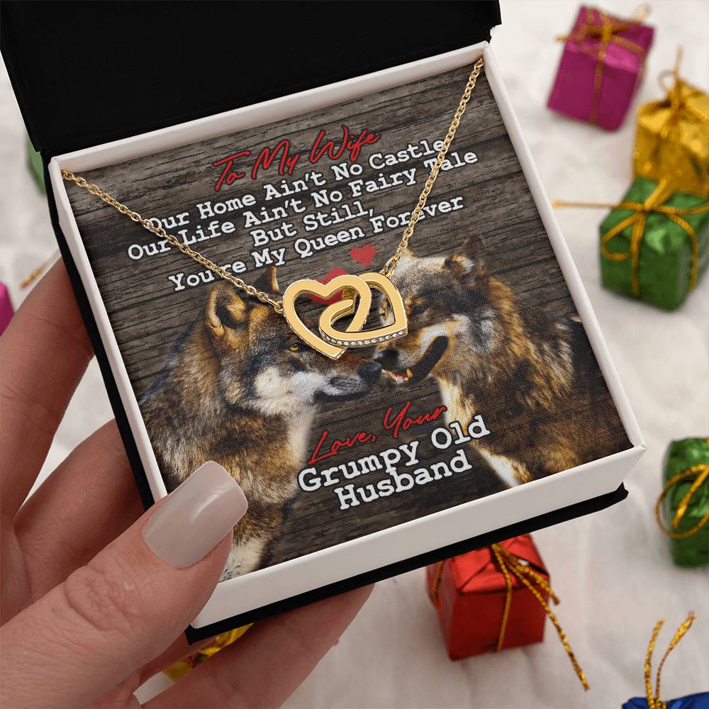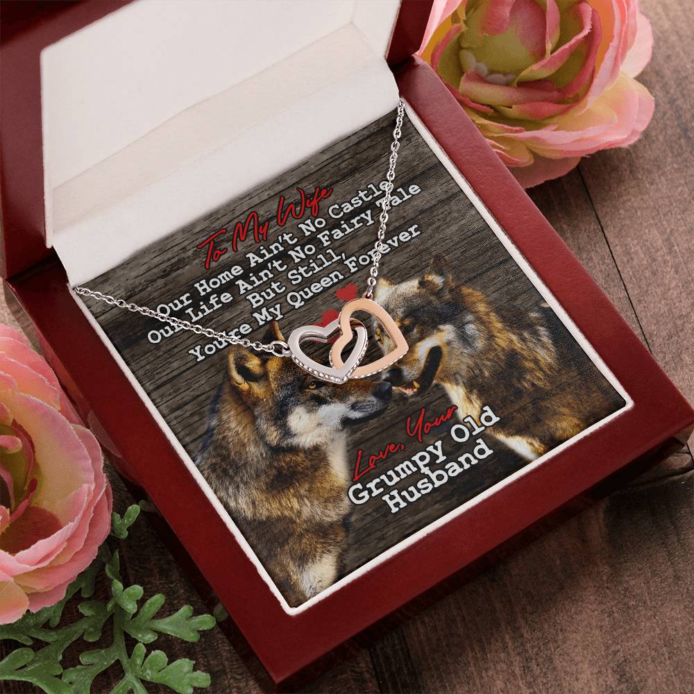 You’re My Queen Forever 18K Rose Gold Interlocking Hearts Necklace Jewelry Unique Gift for Wife Anniversary from Grumpy Old Husband
